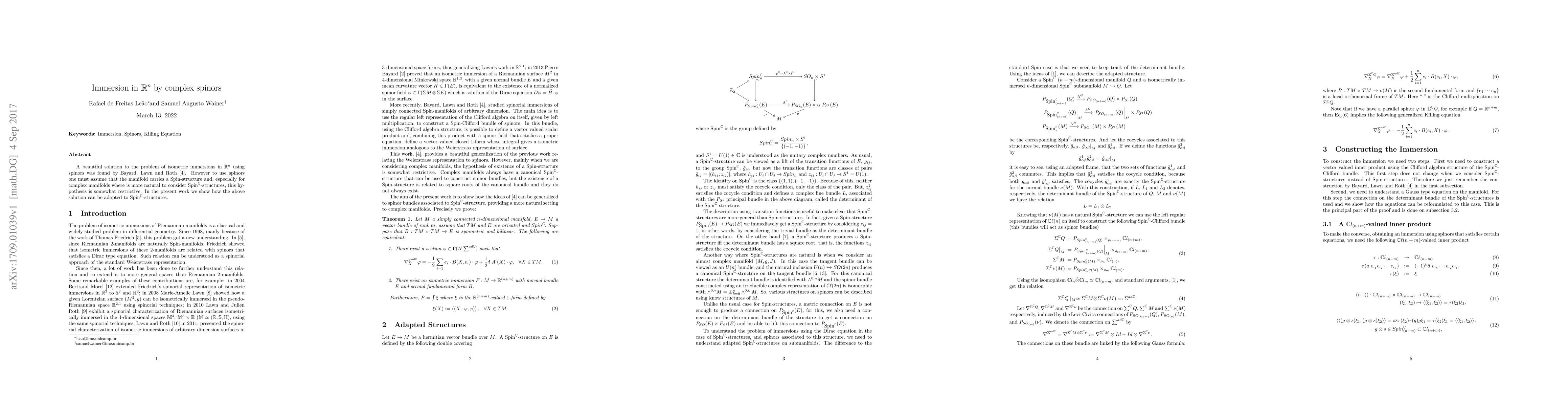 This paper adapts the spinor-based solution for isometric immersions in $\mathbb{R}^n$ to $\mbox{Spin}^{\mathbb{C}}$-structures, removing the restrictive assumption of $\mbox{Spin}$-structure, particularly for complex manifolds.
