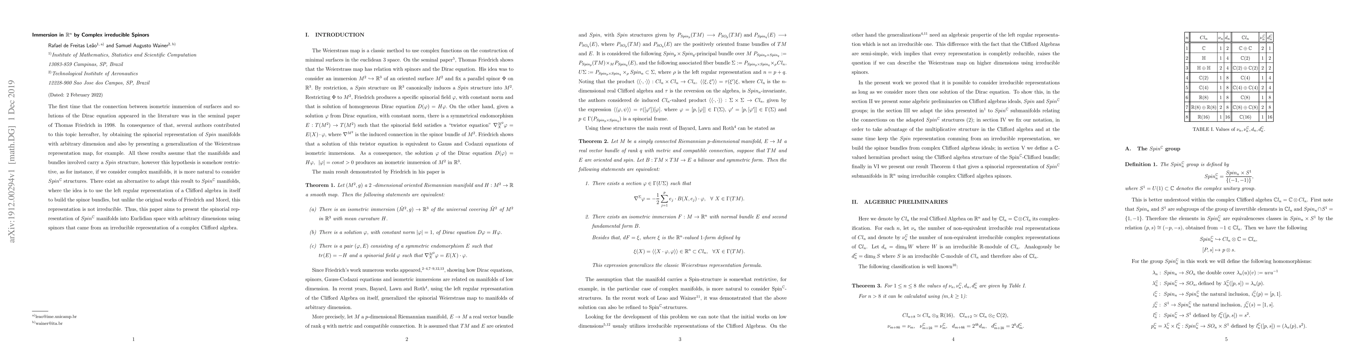 This paper explores the spinorial representation of SpinC manifolds in Euclidean space using irreducible complex spinors, providing an alternative to the traditional methods that rely on Spin structures and non-irreducible representations. It aims to generalize the connection between isometric immersion and Dirac equations to complex manifolds.
