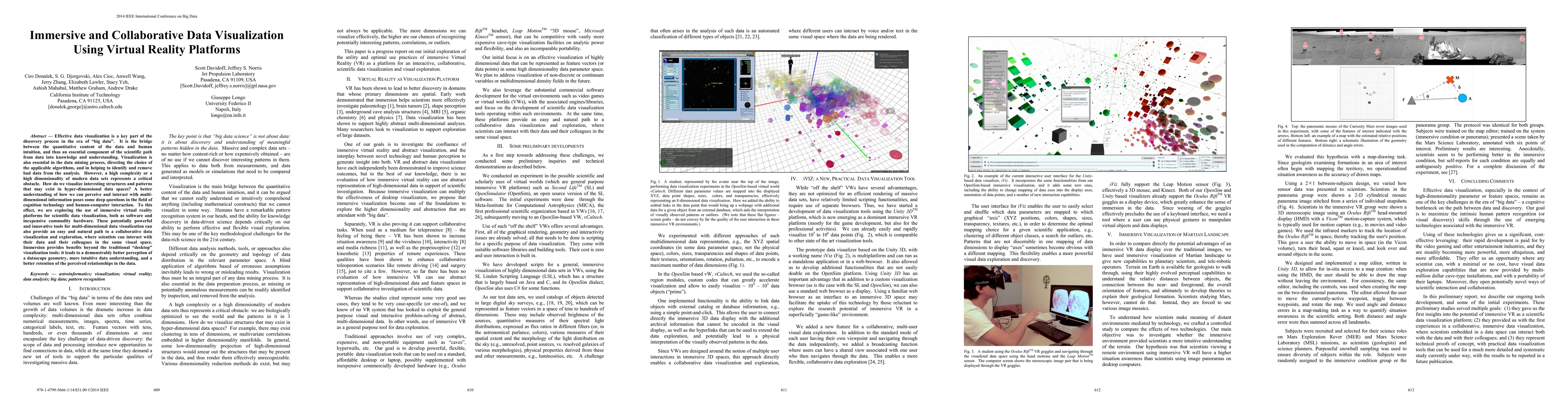 This paper explores the use of immersive virtual reality platforms for enhancing scientific data visualization in the big data era, highlighting their potential to improve perception and interaction with high-dimensional data, and to facilitate collaborative data exploration and understanding among scientists.