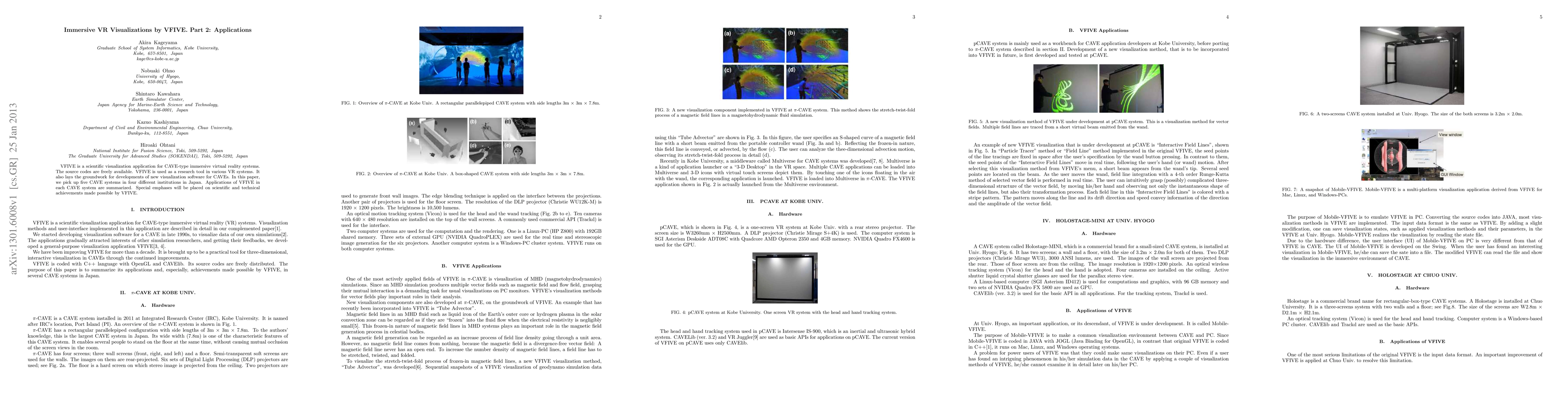 This paper explores the applications of VFIVE, a scientific visualization tool for CAVE-type immersive VR systems, across five CAVE installations in Japan. It highlights the scientific and technical advancements enabled by VFIVE in various research contexts.