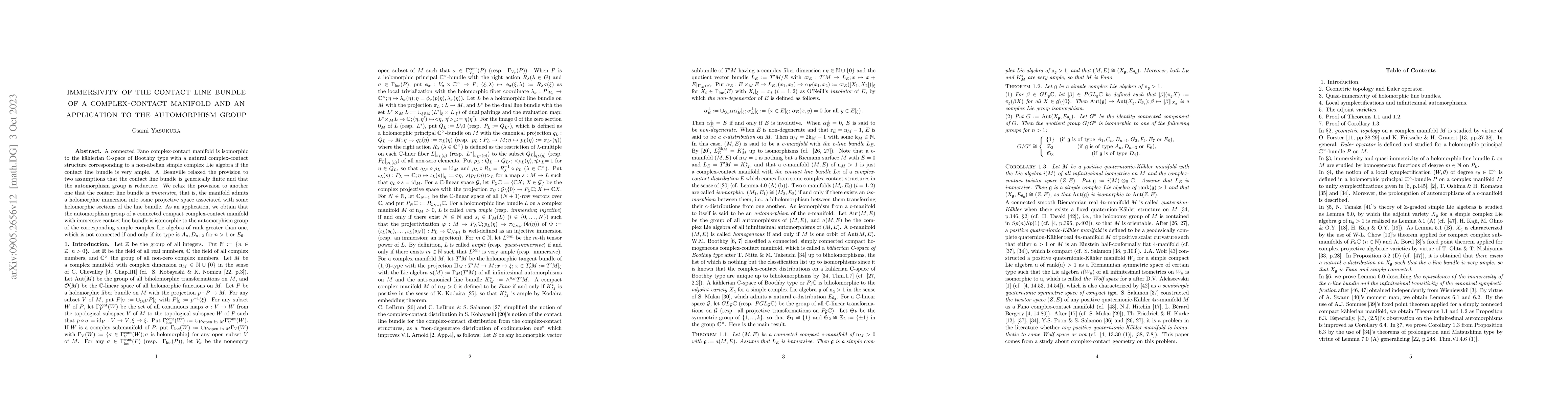 A connected Fano complex-contact manifold is isomorphic to the kaehlerian C-space of Boothby type with a natural complex-contact structure corresponding to a non-abelian simple complex Lie algebra if the contact line bundle is very ample. A. Beauville relaxed the provision to two assumptions that the contact line bundle is generically finite and that the automorphism group is reductive. We relax the provision to another one that that the contact line bundle is immersive, that is, the manifold admits a holomorphic immersion into some projective space associated with some holomorphic sections of the line bundle. As an application, we obtain that the automorphism group of a connected compact complex-contact manifold with immersive contact line bundle is isomorphic to the automorphism group of the corresponding simple complex Lie algebra of rank greater than one, which is not connected if and only if its type is A_{n}, D_{n+2} for n > 1 or E_{6}.
