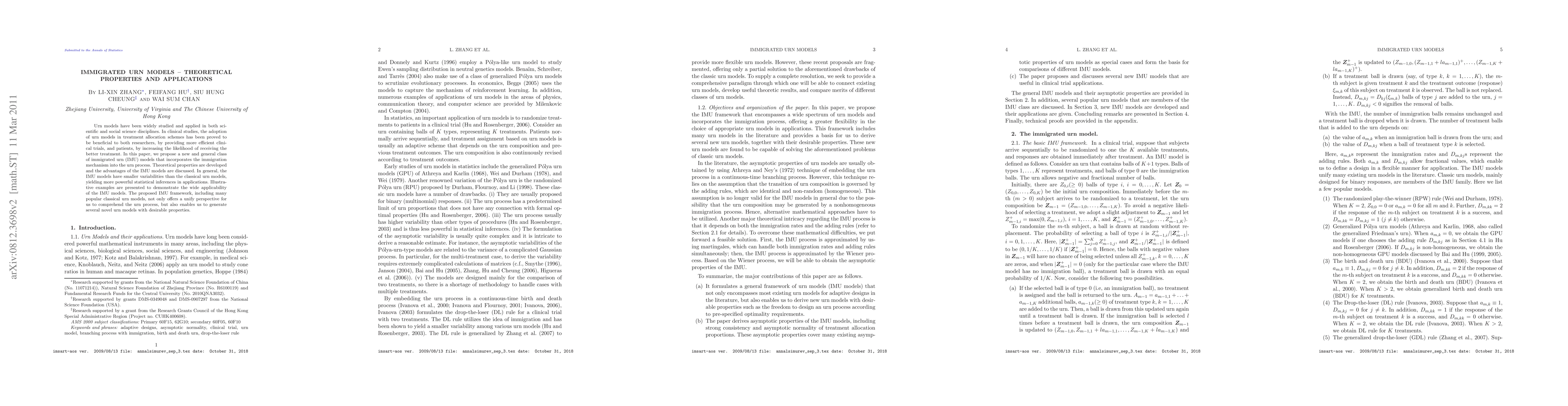 Urn models have been widely studied and applied in both scientific and social science disciplines. In clinical studies, the adoption of urn models in treatment allocation schemes has been proved to be beneficial to both researchers, by providing more efficient clinical trials, and patients, by increasing the likelihood of receiving the better treatment. In this paper, we propose a new and general class of immigrated urn (IMU) models that incorporates the immigration mechanism into the urn process. Theoretical properties are developed and the advantages of the IMU models are discussed. In general, the IMU models have smaller variabilities than the classical urn models, yielding more powerful statistical inferences in applications. Illustrative examples are presented to demonstrate the wide applicability of the IMU models. The proposed IMU framework, including many popular classical urn models, not only offers a unify perspective for us to comprehend the urn process, but also enables us to generate several novel urn models with desirable properties.