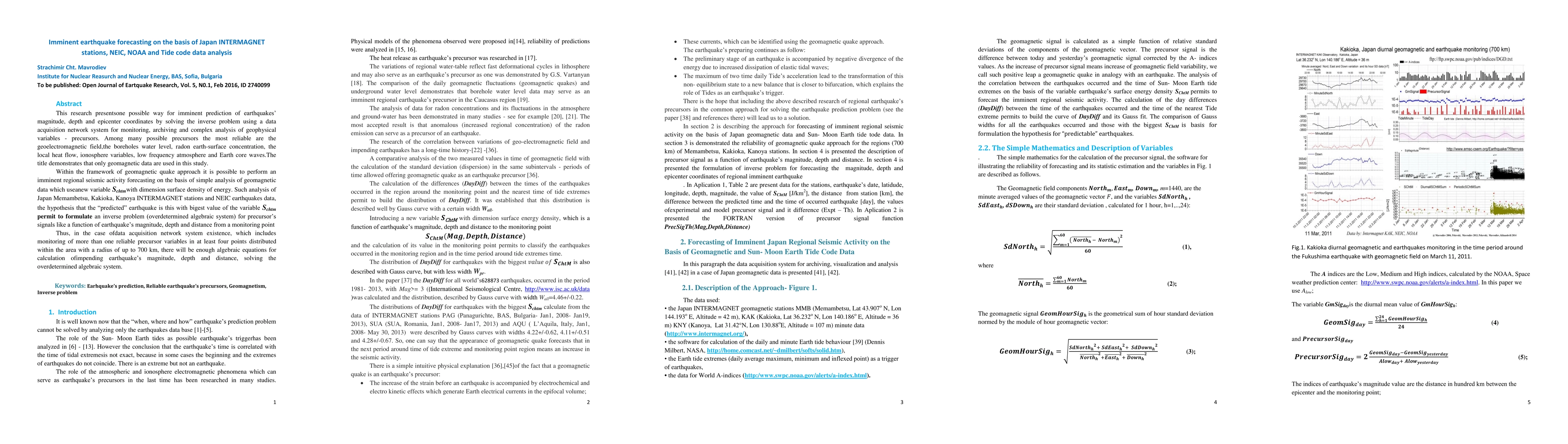 This study explores imminent earthquake prediction using geomagnetic data from Japan INTERMAGNET stations and NEIC data, employing a new variable Schtm for energy density analysis. The research proposes a method to forecast earthquake magnitude, depth, and epicenter based on geomagnetic precursors, suggesting that a network monitoring multiple precursor variables can solve an overdetermined system to predict seismic activity.