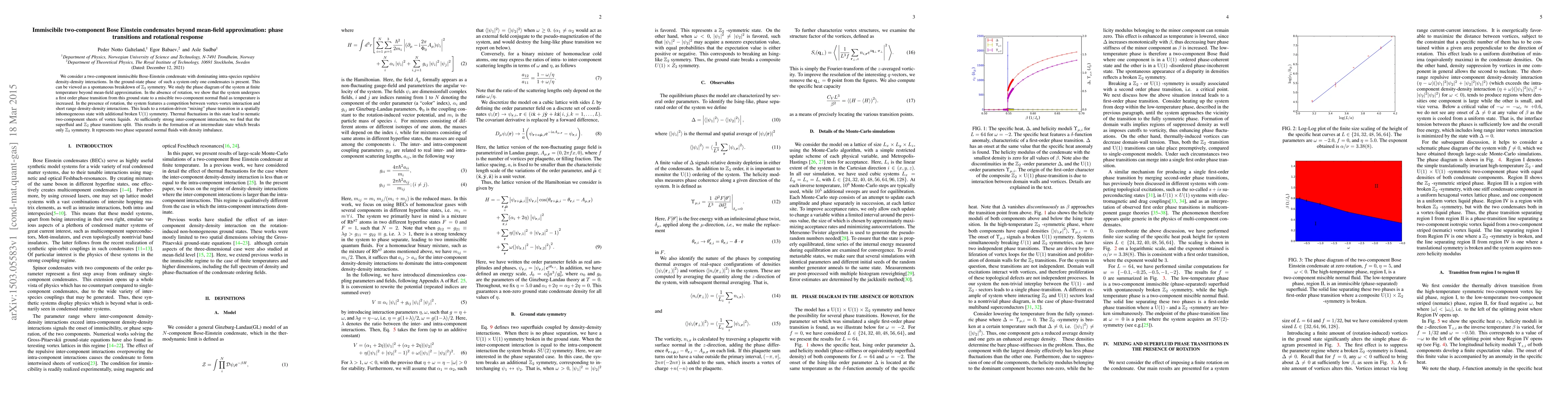 This paper investigates a two-component immiscible Bose-Einstein condensate, revealing a first-order phase transition to a miscible fluid at higher temperatures and a rotation-induced "mixing" phase transition due to vortex interactions. The study also uncovers a split superfluid transition leading to an intermediate state with phase separation.