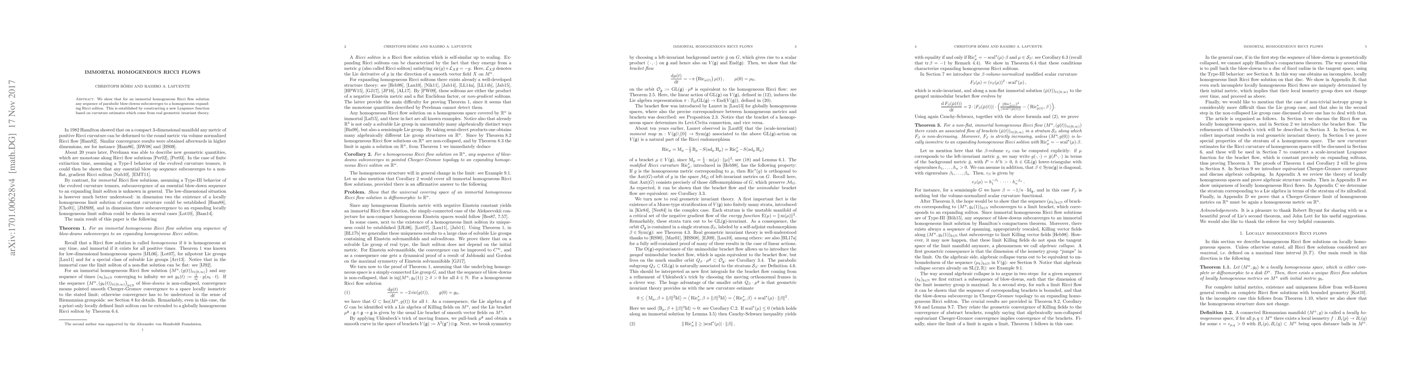 Summary: This paper demonstrates that immortal homogeneous Ricci flows subconverge to homogeneous expanding Ricci solitons through the construction of a novel Lyapunov function derived from curvature estimates and real geometric invariant theory.