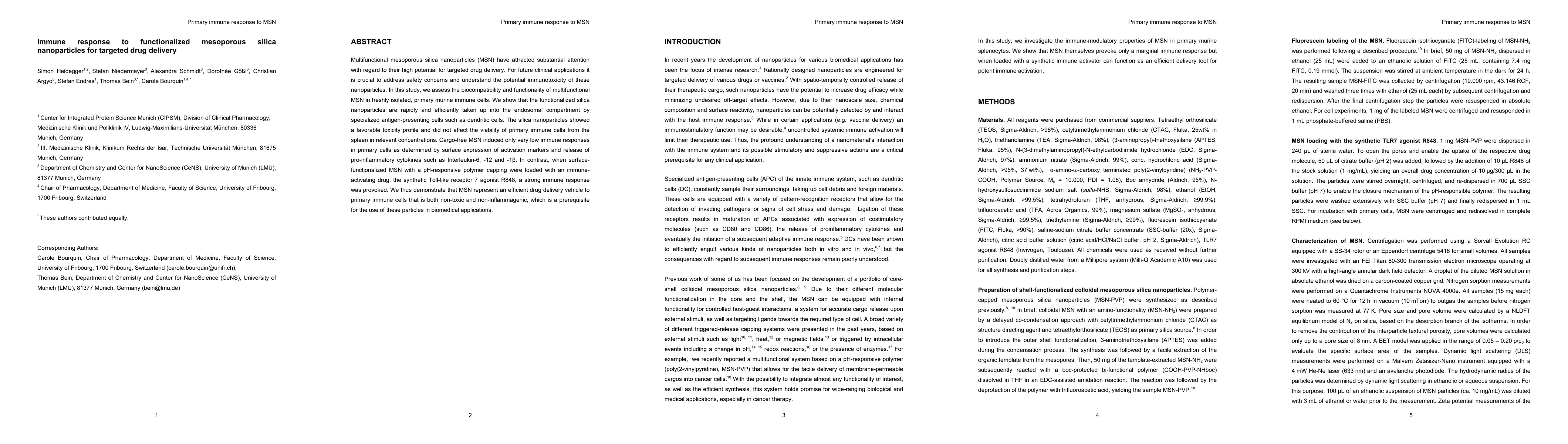 This study evaluates the biocompatibility and immunotoxicity of multifunctional mesoporous silica nanoparticles (MSN) in primary murine immune cells, finding they are non-toxic and non-inflammagenic in cargo-free forms. However, MSN loaded with an immune-activating drug, R848, provokes a strong immune response, indicating potential for targeted drug delivery.