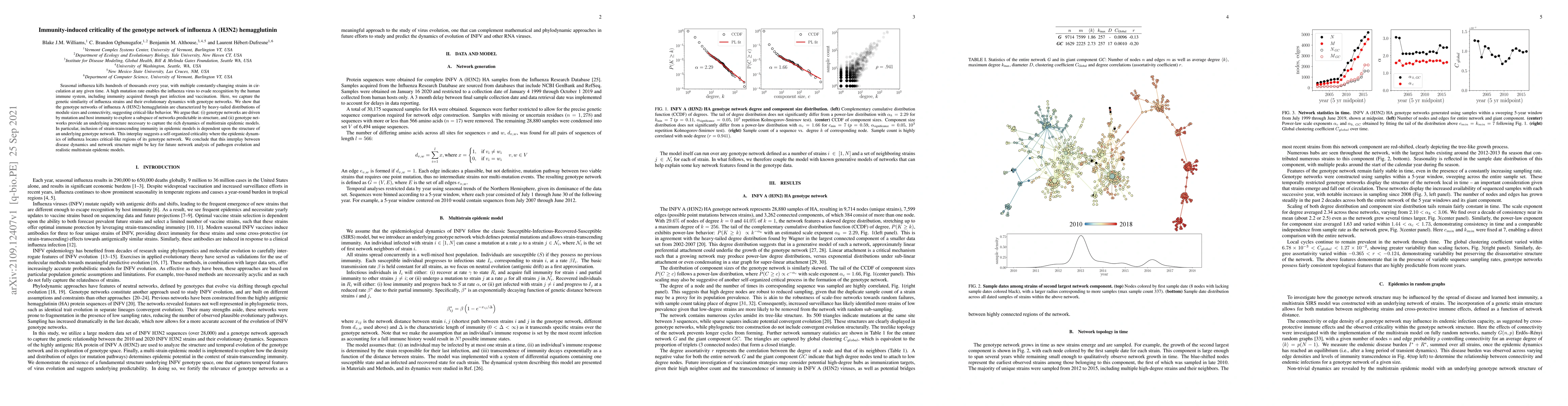 Seasonal influenza kills hundreds of thousands every year, with multiple constantly-changing strains in circulation at any given time. A high mutation rate enables the influenza virus to evade recognition by the human immune system, including immunity acquired through past infection and vaccination. Here, we capture the genetic similarity of influenza strains and their evolutionary dynamics with genotype networks. We show that the genotype networks of influenza A (H3N2) hemagglutinin are characterized by heavy-tailed distributions of module sizes and connectivity, suggesting critical-like behavior. We argue that: (i) genotype networks are driven by mutation and host immunity to explore a subspace of networks predictable in structure, and (ii) genotype networks provide an underlying structure necessary to capture the rich dynamics of multistrain epidemic models. In particular, inclusion of strain-transcending immunity in epidemic models is dependent upon the structure of an underlying genotype network. This interplay suggests a self-organized criticality where the epidemic dynamics of influenza locates critical-like regions of its genotype network. We conclude that this interplay between disease dynamics and network structure might be key for future network analysis of pathogen evolution and realistic multistrain epidemic models.