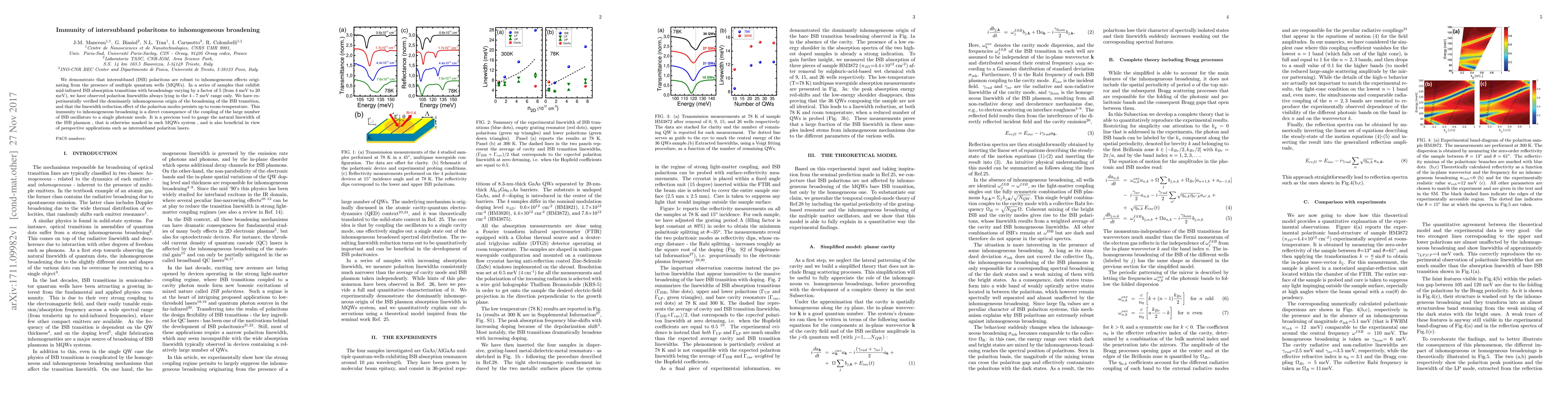 This paper demonstrates that intersubband (ISB) polaritons maintain consistent linewidths (4-7 meV) despite varying inhomogeneous broadening (4-20 meV) in quantum well samples. This immunity results from the coupling of numerous ISB oscillators to a single photonic mode, offering insights into the natural linewidth of ISB plasmons and potential applications in polariton lasers.