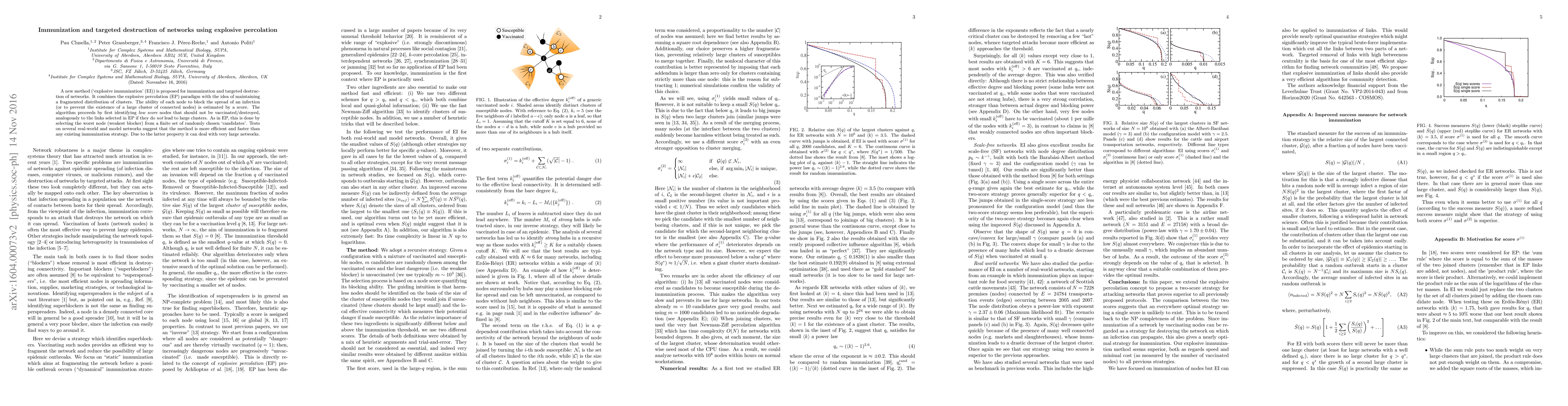 This paper proposes a new immunization strategy called "explosive immunization" that combines explosive percolation with a fragmented cluster distribution approach. It identifies and prioritizes nodes based on their ability to block infection spread, aiming to be more efficient and faster than existing methods, especially for large networks.