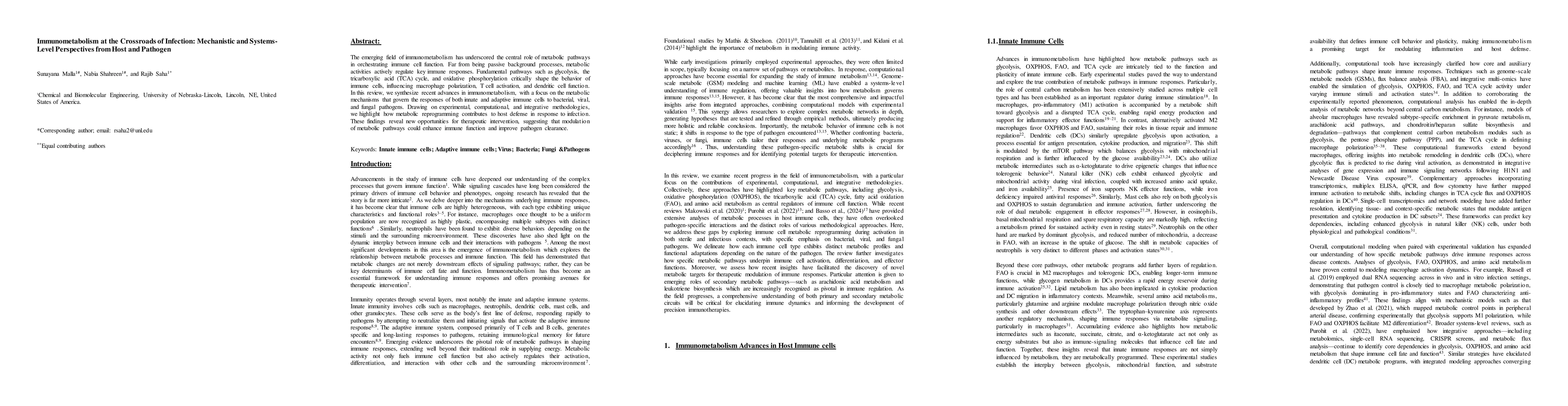 The paper synthesizes recent advances in immunometabolism using experimental, computational, and integrative methodologies.
