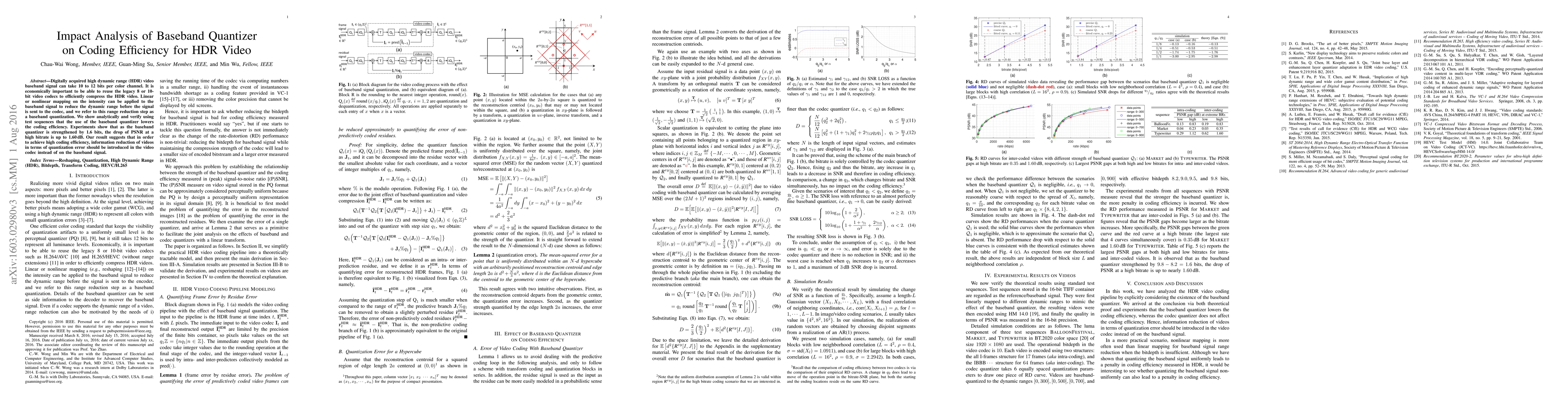 This research investigates the impact of baseband quantization on the coding efficiency of HDR video, finding that it reduces efficiency, with a 1.6-bit increase in baseband quantizer strength causing a 1.60dB drop in PSNR at high bitrates. The study concludes that higher coding efficiency is achieved by introducing quantization error reduction within the video codec rather than at the baseband level.