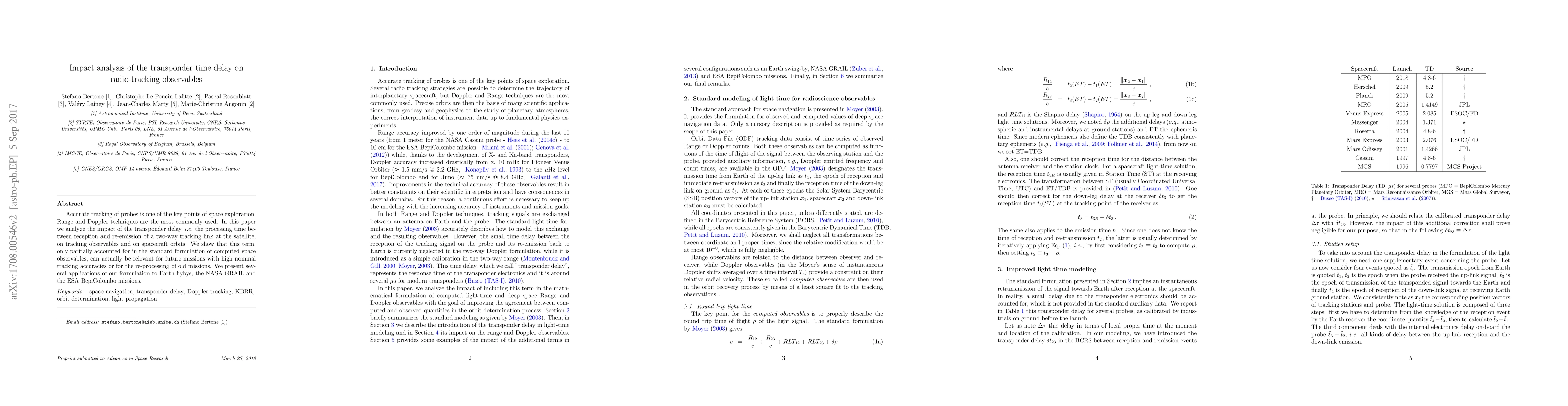Researchers analyzed how a delay in satellite transponders affects tracking accuracy and orbit predictions for space exploration missions, finding it can have significant impacts on future high-accuracy missions.