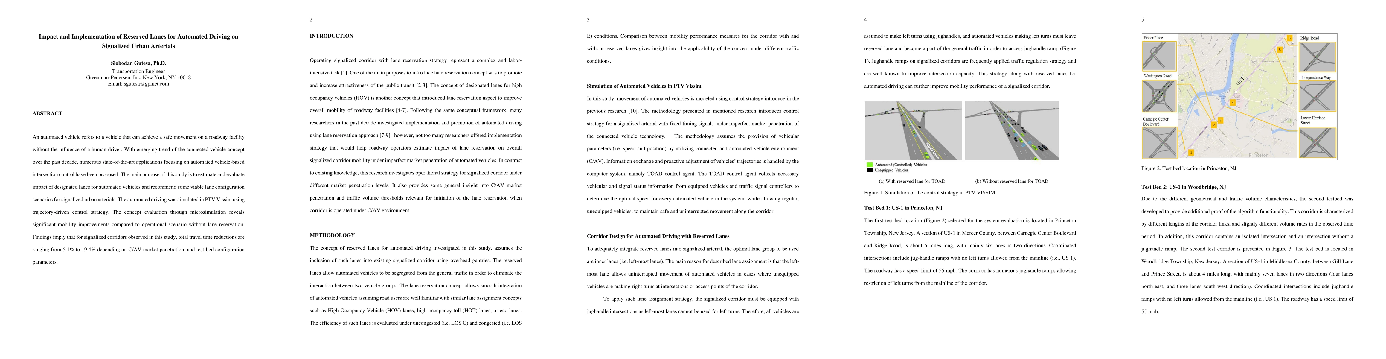 This study evaluates the impact of reserved lanes for automated vehicles on signalized urban arterials, finding significant mobility improvements and travel time reductions ranging from 5.1% to 19.4%. Simulation results suggest optimal lane configurations for integrating automated vehicles to enhance traffic efficiency.