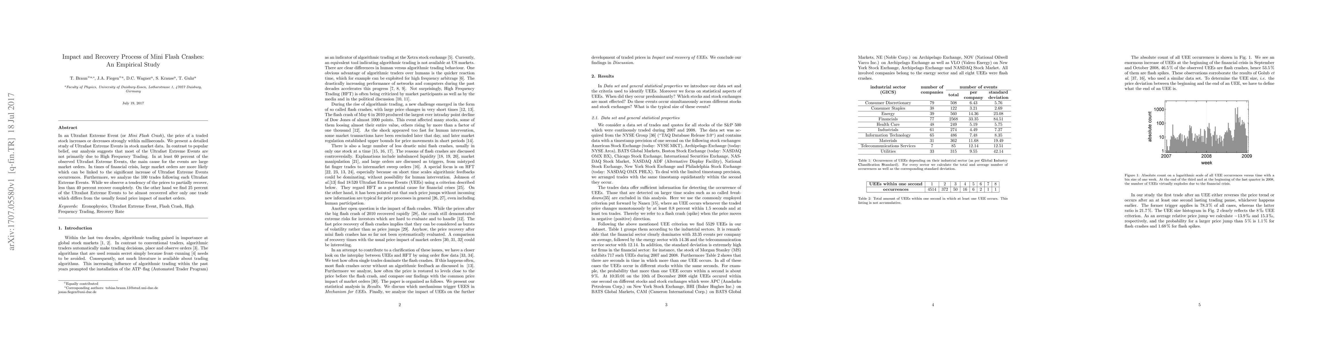 In an Ultrafast Extreme Event (or Mini Flash Crash), the price of a traded stock increases or decreases strongly within milliseconds. We present a detailed study of Ultrafast Extreme Events in stock market data. In contrast to popular belief, our analysis suggests that most of the Ultrafast Extreme Events are not primarily due to High Frequency Trading. In at least 60 percent of the observed Ultrafast Extreme Events, the main cause for the events are large market orders. In times of financial crisis, large market orders are more likely which can be linked to the significant increase of Ultrafast Extreme Events occurrences. Furthermore, we analyze the 100 trades following each Ultrafast Extreme Events. While we observe a tendency of the prices to partially recover, less than 40 percent recover completely. On the other hand we find 25 percent of the Ultrafast Extreme Events to be almost recovered after only one trade which differs from the usually found price impact of market orders.