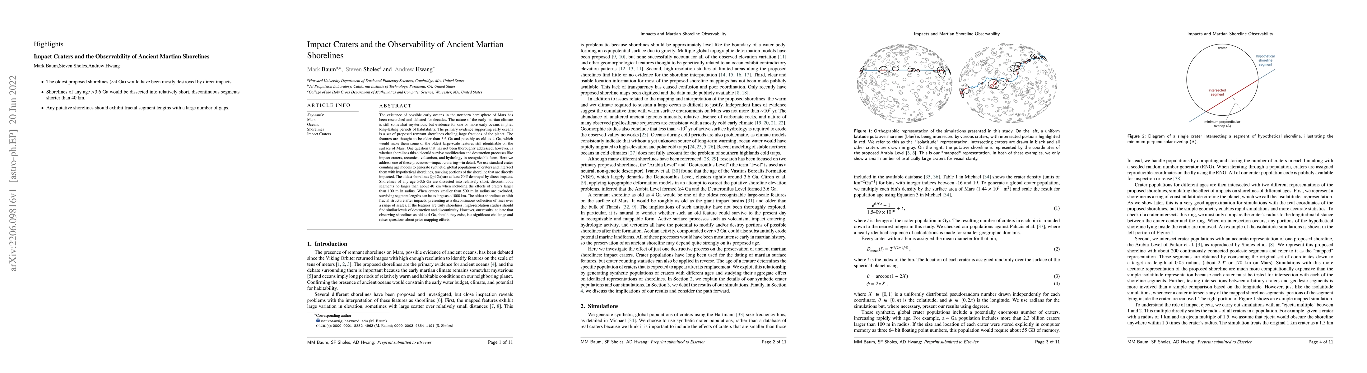 This paper investigates the impact of cratering on the observability of ancient Martian shorelines, finding that shorelines older than 3.6 Ga are largely destroyed or fragmented by impact craters. The study suggests that shorelines as old as 4 Ga are at least 70% destroyed, raising doubts about the existence of such ancient features.
