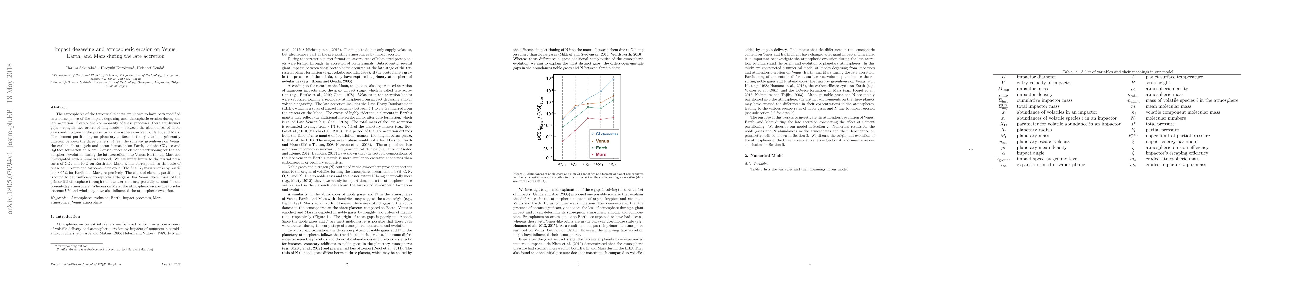 This paper investigates the impact of impact degassing and atmospheric erosion on the atmospheric evolution of Venus, Earth, and Mars during the late accretion. Despite similar processes, the distinct element partitioning on these planets led to significant differences in the present-day atmospheres, with the effect of element partitioning insufficient to fully explain the observed gaps.