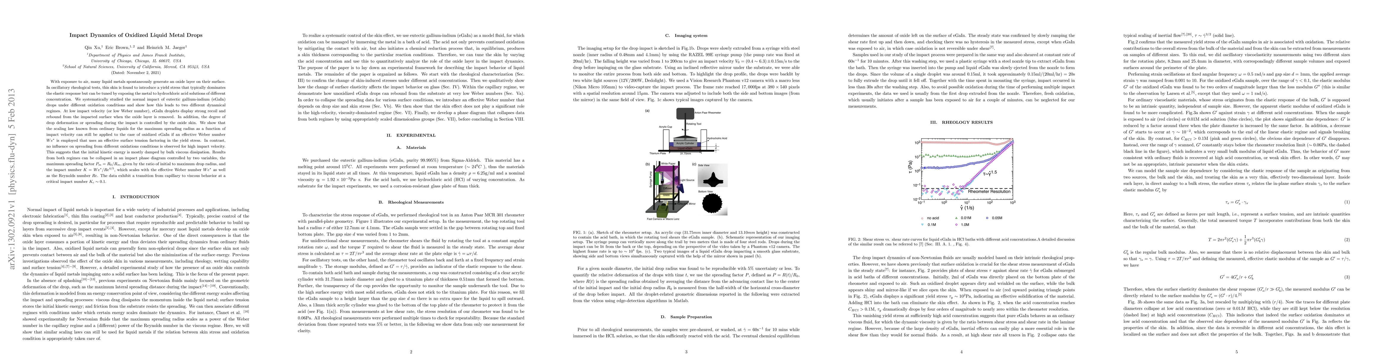 This study investigates the impact dynamics of oxidized eutectic gallium-indium (eGaIn) drops, revealing two distinct regimes based on impact velocity. At low velocities, the oxide layer influences drop recoil and deformation, while at high velocities, kinetic energy dissipation dominates, leading to a transition from capillary to viscous behavior.