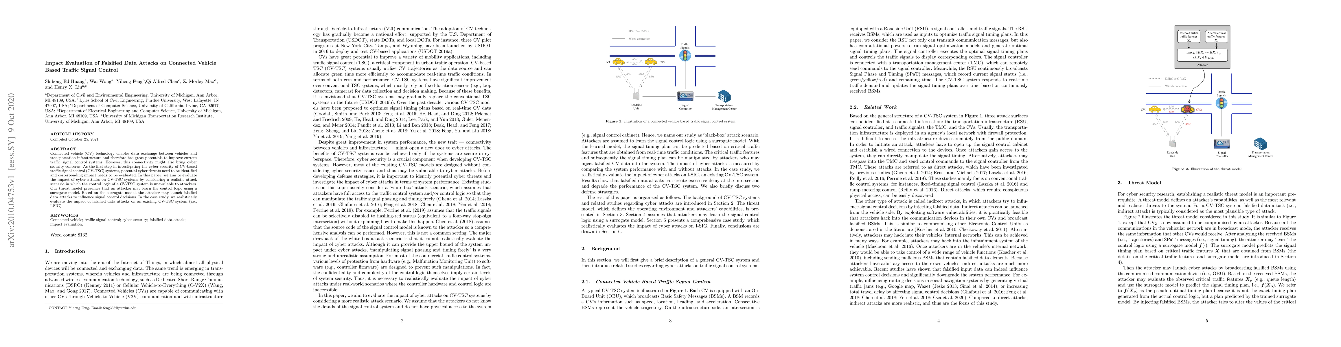 This paper evaluates the impact of falsified data attacks on connected vehicle-based traffic signal control systems, focusing on scenarios where attackers use a surrogate model to infer the control logic. The study assesses the effects of such attacks on an existing CV-TSC system, demonstrating potential vulnerabilities and their consequences.