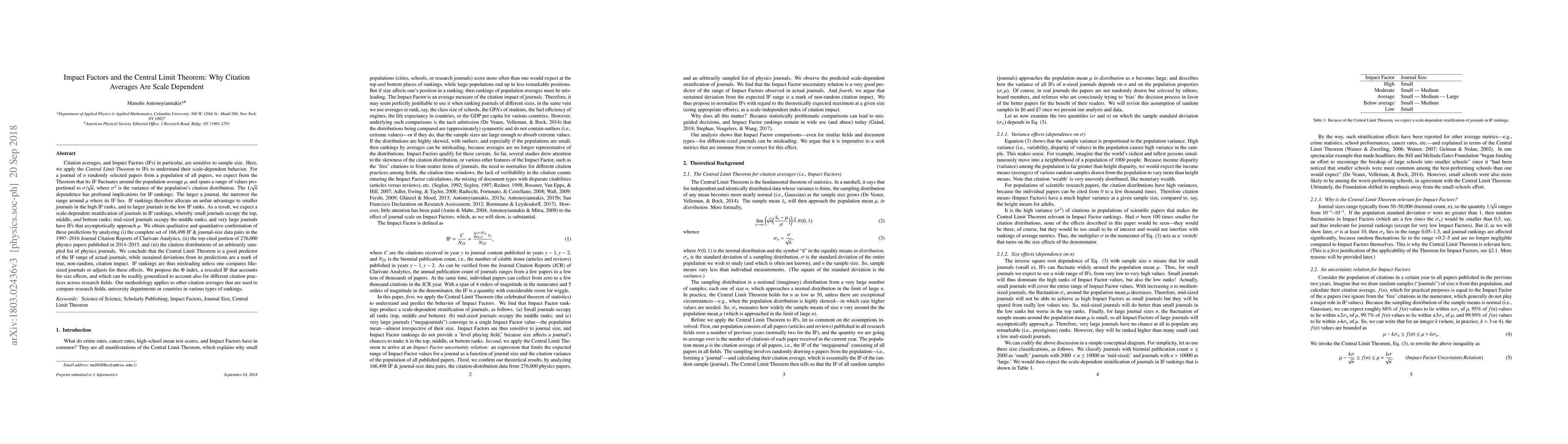 Citation averages, and Impact Factors (IFs) in particular, are sensitive to sample size. We apply the Central Limit Theorem (CLT) to IFs to understand their scale-dependent behavior. For a journal of $n$ randomly selected papers from a population of all papers, we expect from the CLT that its IF fluctuates around the population average $\mu$, and spans a range of values proportional to $\sigma/\sqrt[]{n}$, where $\sigma^2$ is the variance of the population's citation distribution. The $1/\sqrt[]{n}$ dependence has profound implications for IF rankings: The larger a journal, the narrower the range around $\mu$ where its IF lies. IF rankings therefore allocate an unfair advantage to smaller journals in the high IF ranks, and to larger journals in the low IF ranks. We expect a scale-dependent stratification of journals in IF rankings, whereby small journals occupy top, middle, and bottom ranks; mid-sized journals occupy middle ranks; and very large journals have IFs that asymptotically approach $\mu$. We confirm these predictions by analyzing (i) 166,498 IF \& journal-size data pairs in the 1997--2016 Journal Citation Reports of Clarivate Analytics, (ii) the top-cited portion of 276,000 physics papers published in 2014--2015, and (iii) the citation distributions of an arbitrarily sampled list of physics journals. We conclude that the CLT is a good predictor of the IF range of actual journals, while sustained deviations from its predictions are a mark of true, non-random, citation impact. IF rankings are thus misleading unless one compares like-sized journals or adjusts for these effects. We propose the $\Phi$ index, a rescaled IF adjusted for size, which can be generalized to account also for different citation practices across research fields. Our methodology applies also to citation averages used to compare research fields, university departments or countries in various rankings.
