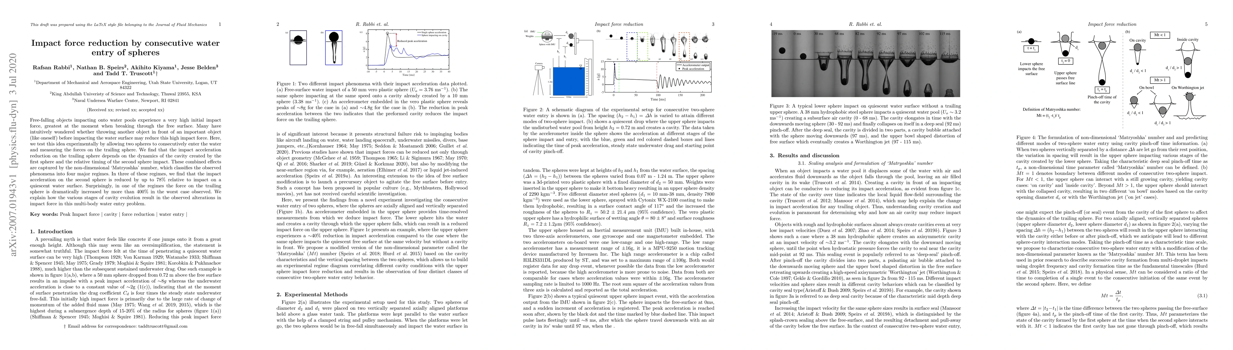 Free-falling objects impacting onto water pools experience a very high initial impact force, greatest at the moment when breaking through the free surface. Many have intuitively wondered whether throwing another object in front of an important object (like oneself) before impacting the water surface may reduce this high impact force. Here, we test this idea experimentally by allowing two spheres to consecutively enter the water and measuring the forces on the trailing sphere. We find that the impact acceleration reduction on the trailing sphere depends on the dynamics of the cavity created by the first sphere and the relative timing of the second sphere impact. These combined effects are captured by the non-dimensional `Matryoshka' number, which classifies the observed phenomena into four major regimes. In three of these regimes, we find that the impact acceleration on the second sphere is reduced by up to 78\% relative to impact on a quiescent water surface. Surprisingly, in one of the regimes, the force on the trailing sphere is dramatically increased by more than 400\% in the worst case observed. We explain how the various stages of cavity evolution result in the observed alterations in impact force in this multi-body water entry problem.