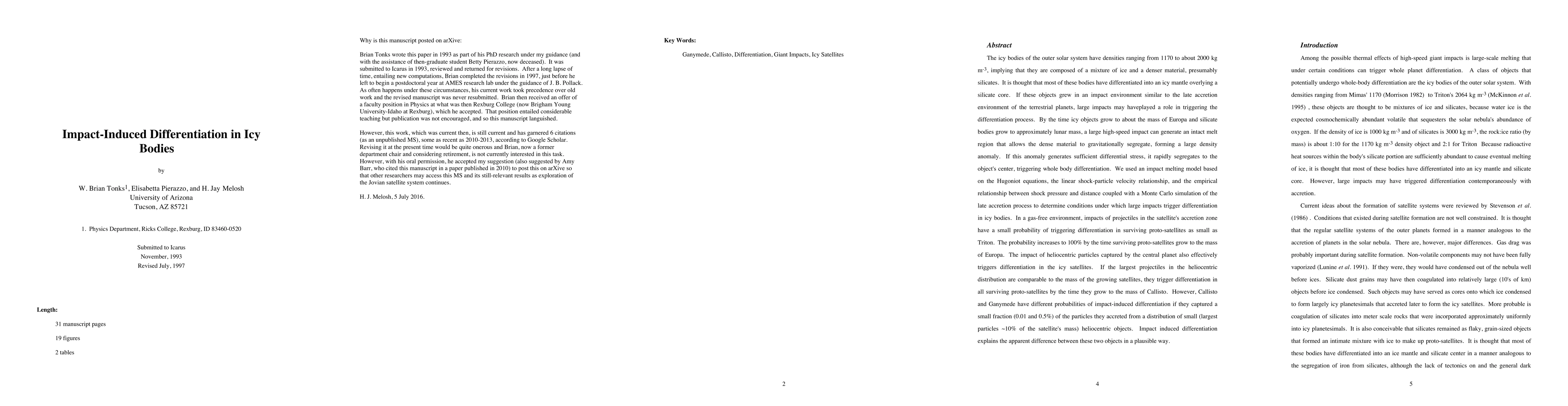 This paper investigates the conditions under which large impacts can trigger differentiation in icy bodies, using a model based on impact melting and Monte Carlo simulations. It finds that while small proto-satellites like Triton have a low probability of differentiation, this probability increases significantly as they grow to the mass of Europa, and becomes certain for larger bodies like Callisto.