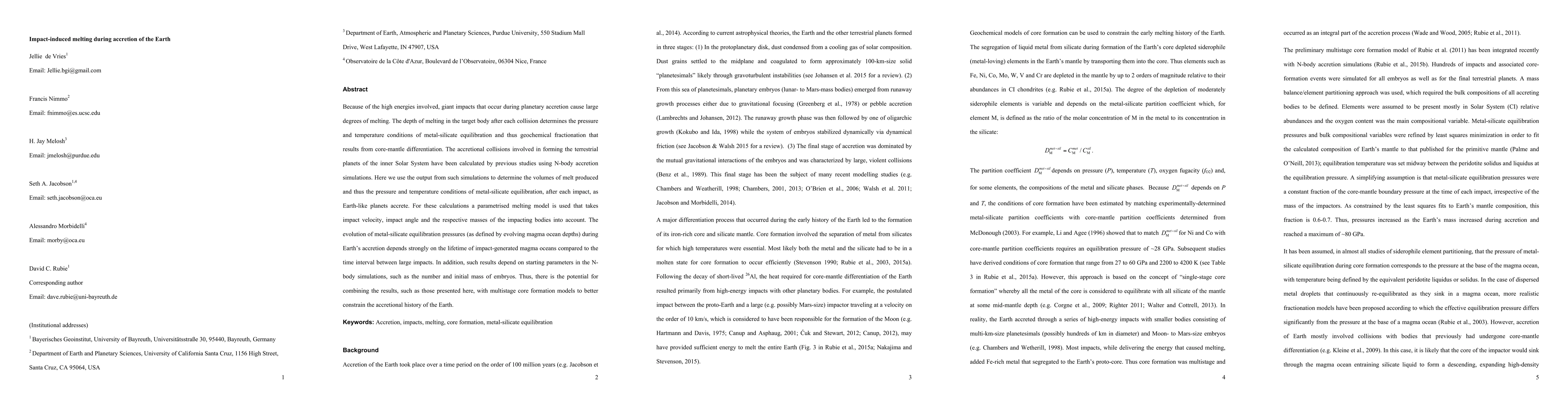 Seth A. Jacobson, Alessandro Morbidelli, Paolo A. Sossi et al.