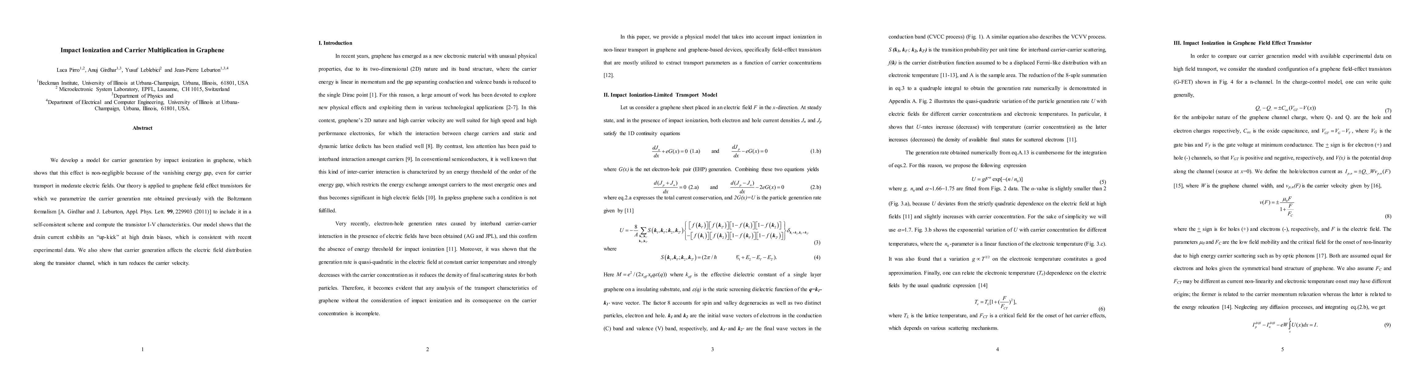 The paper presents a theoretical model for carrier generation by impact ionization in graphene, incorporating it into a self-consistent scheme for GFET I-V characteristics calculations.