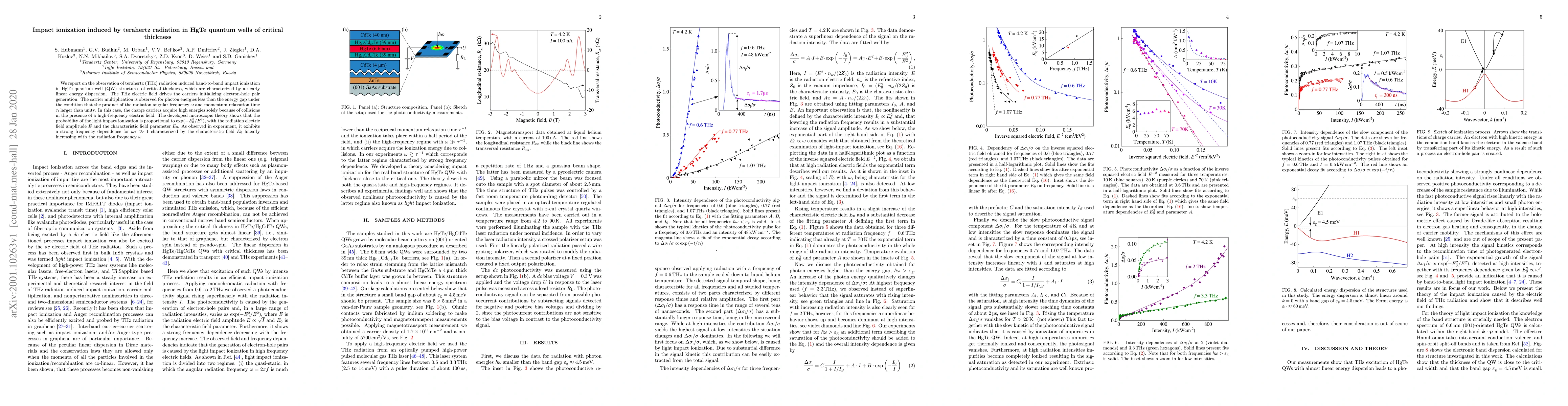 This paper reports on the observation of terahertz (THz) radiation-induced impact ionization in HgTe quantum wells of critical thickness, where carriers generate electron-hole pairs driven by the THz electric field. The study reveals a strong frequency dependence for photon energies below the energy gap, with ionization probability proportional to $\exp(-E_0^2/E^2)$, where $E_0$ increases linearly with frequency.