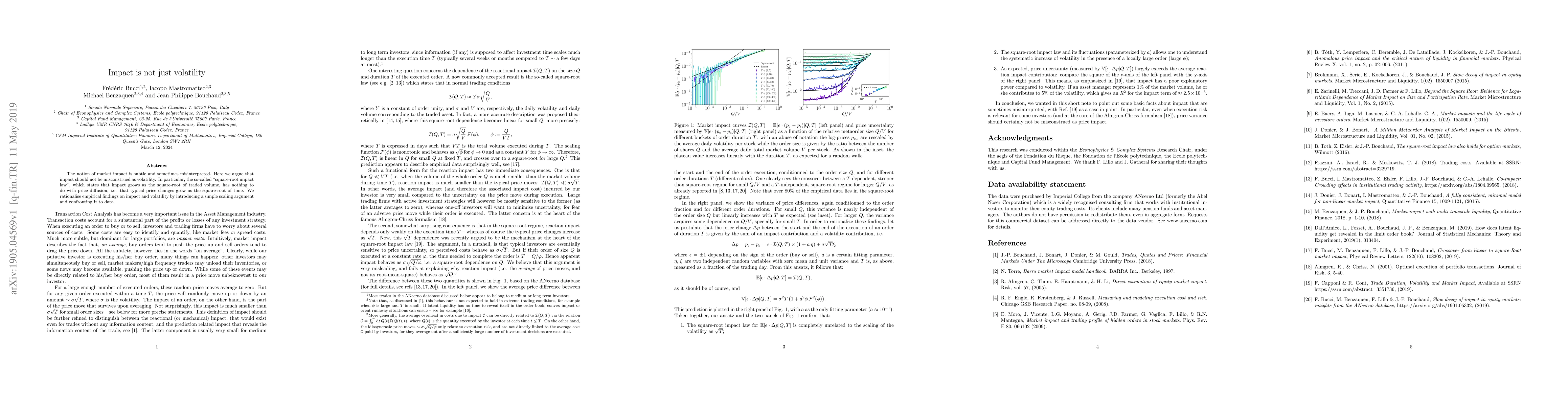 The notion of market impact is subtle and sometimes misinterpreted. Here we argue that impact should not be misconstrued as volatility. In particular, the so-called ``square-root impact law'', which states that impact grows as the square-root of traded volume, has nothing to do with price diffusion, i.e. that typical price changes grow as the square-root of time. We rationalise empirical findings on impact and volatility by introducing a simple scaling argument and confronting it to data.