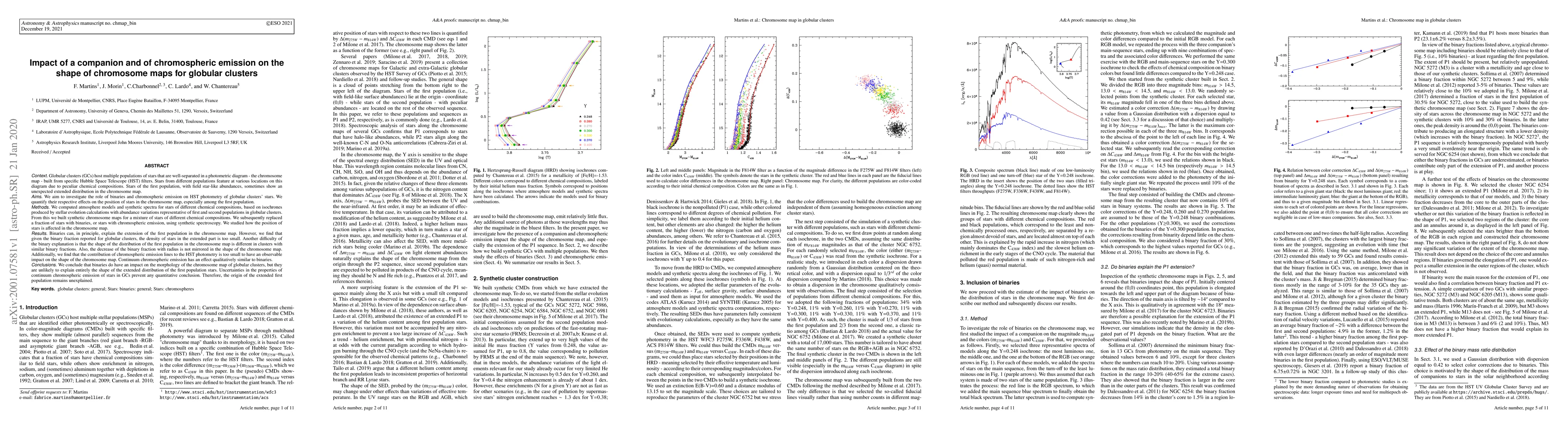 This paper examines the influence of binaries and chromospheric emission on the chromosome maps of globular clusters, finding that while binaries can affect the map's morphology, they are insufficient to explain the extended first population distribution. Chromospheric emission's impact on the map is negligible. The origin of the extended first population remains unexplained due to uncertainties in chromospheric emission properties.