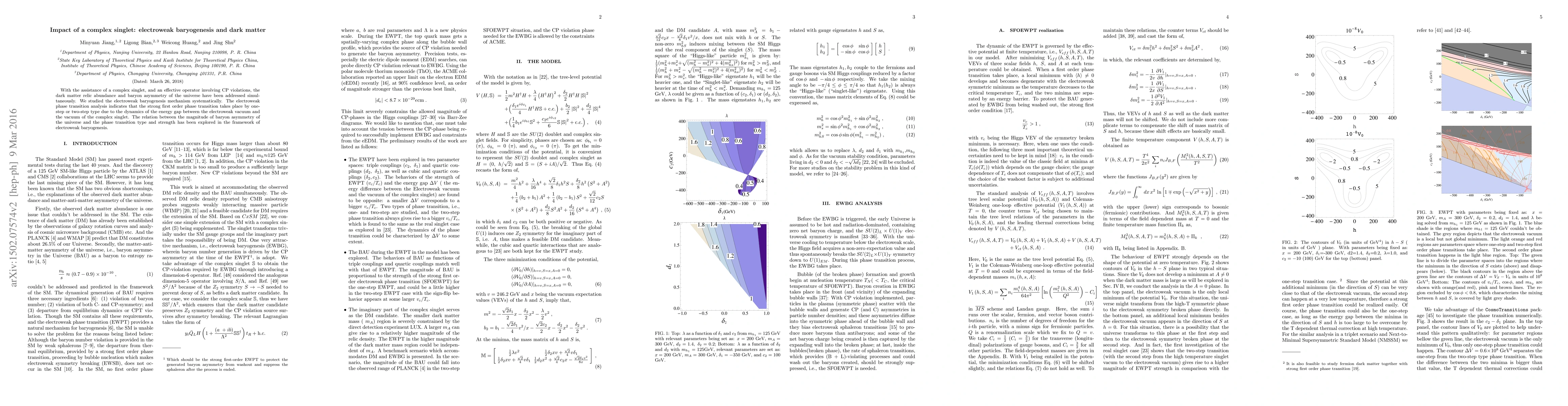 This paper explores the role of a complex singlet in addressing both dark matter relic abundance and baryon asymmetry through an effective CP-violating operator. It systematically investigates the electroweak baryogenesis mechanism, finding that the dynamics of the energy gap between the electroweak and complex singlet vacua can induce a strong first-order phase transition, influencing the magnitude of the universe's baryon asymmetry.
