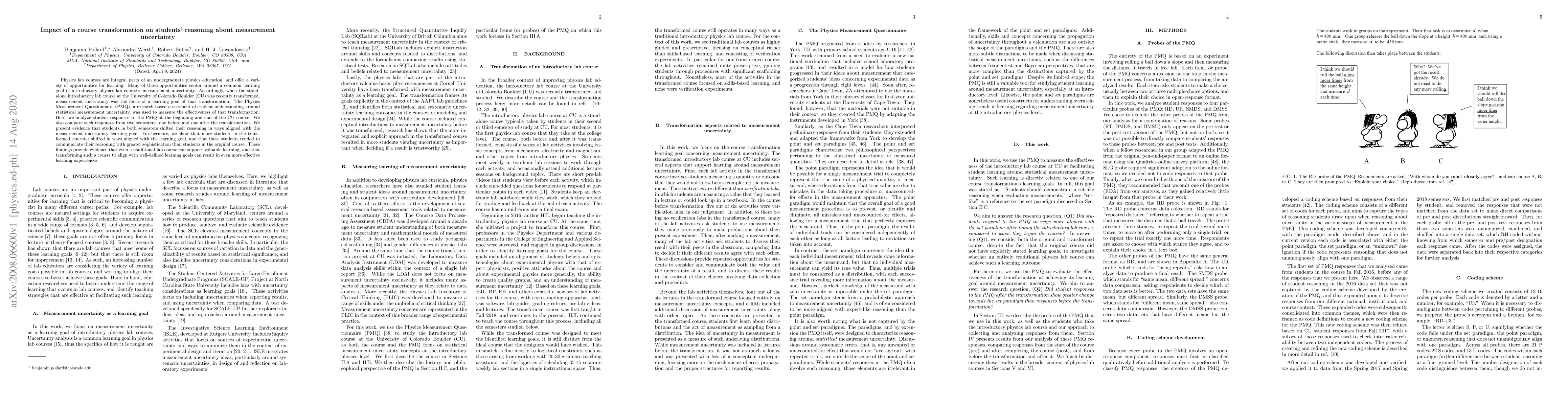 This study examines the impact of transforming a physics lab course at the University of Colorado Boulder, focusing on measurement uncertainty. Results show that students improved their reasoning about measurement uncertainty, with greater sophistication in the transformed course, indicating effective alignment with learning goals.