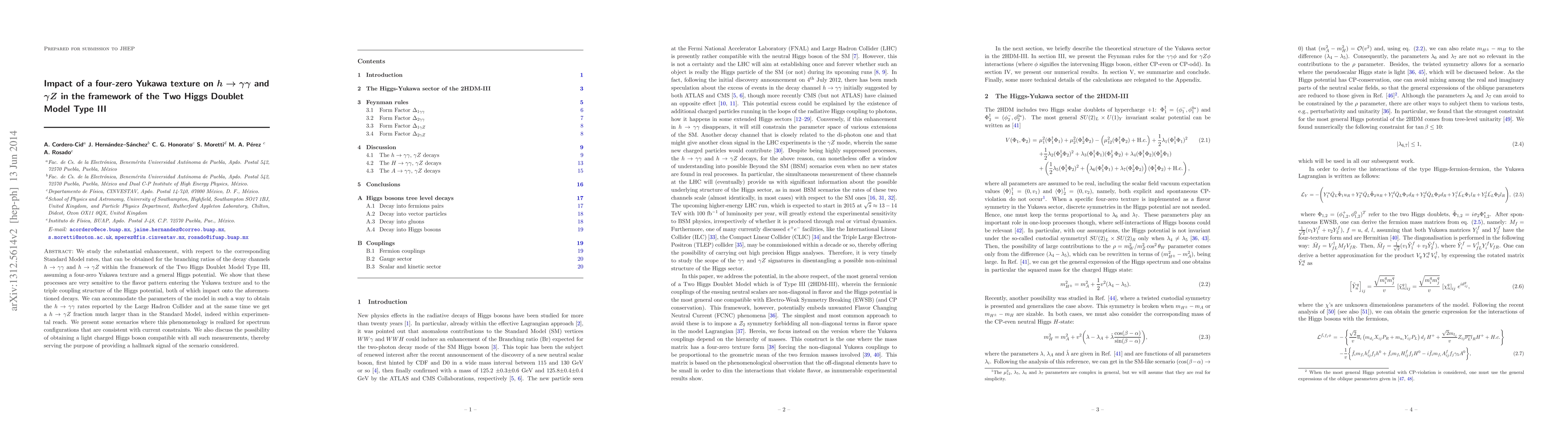 This paper investigates how a four-zero Yukawa texture in the Two Higgs Doublet Model Type III can significantly enhance decay rates for $h \to \gamma \gamma$ and $h\to \gamma Z$, achieving rates reported by the LHC while also predicting a much larger $h\to \gamma Z$ fraction than the Standard Model. It explores scenarios consistent with current constraints and discusses the potential for a light charged Higgs boson.