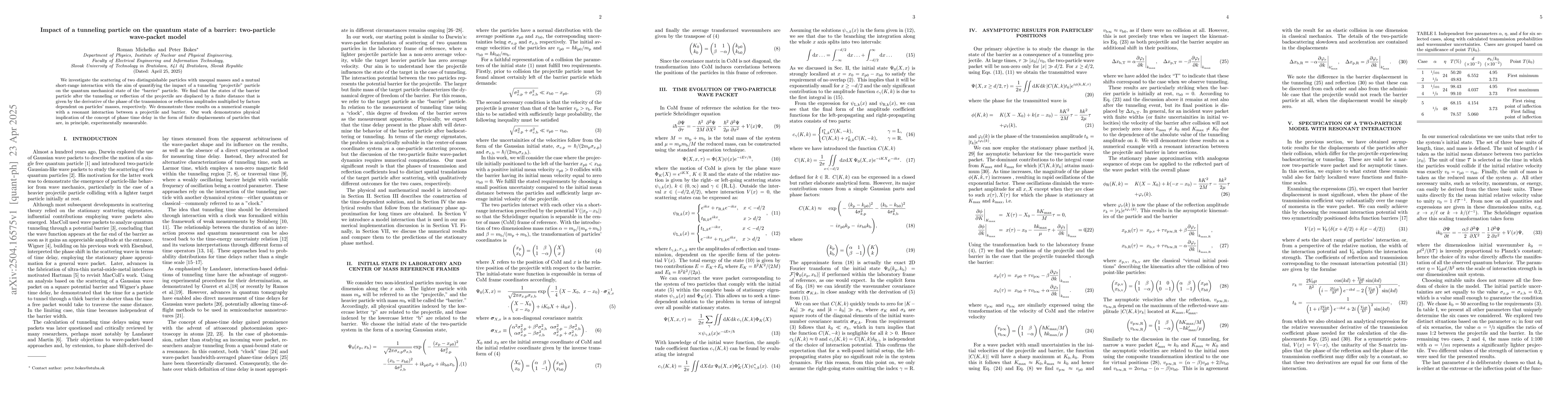 The paper presents a detailed analysis of the impact of a tunneling particle on a barrier particle's quantum state, providing a comprehensive theoretical framework and numerical examples.