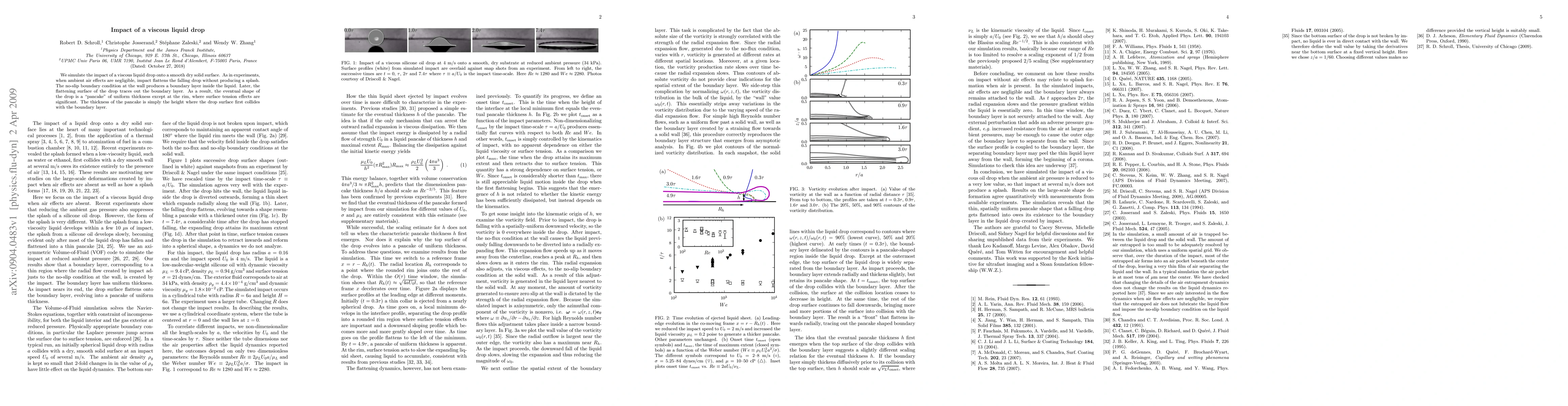 This study simulates the impact of a viscous liquid drop on a smooth dry solid surface, revealing that it flattens into a uniform "pancake" shape without splashing, primarily due to the no-slip boundary condition creating a boundary layer that influences the drop's final thickness.