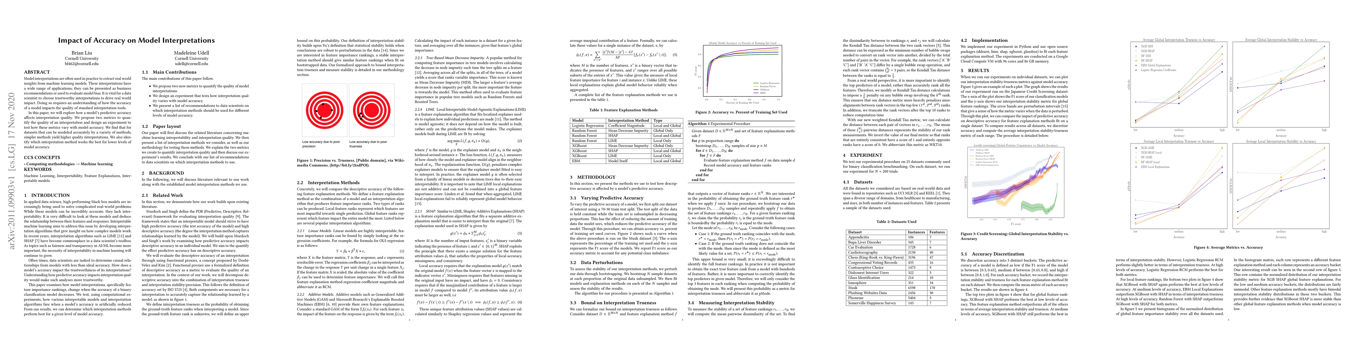 This paper investigates how a machine learning model's predictive accuracy influences the quality of its interpretations. The authors propose two metrics to quantify interpretation quality and find that simpler methods yield better interpretations when models are accurate, while identifying the most effective interpretation method for lower accuracy levels.