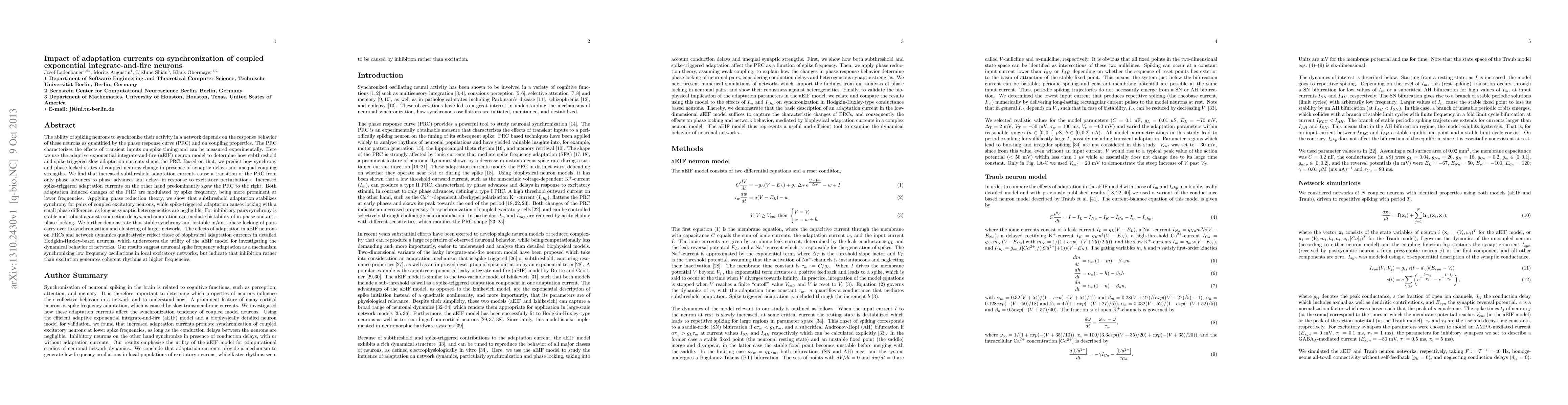 This study explores how adaptation currents in neurons influence the synchronization of coupled exponential integrate-and-fire neurons, finding that increased adaptation currents promote synchronization in excitatory neurons at lower frequencies. Inhibitory neurons synchronize with conduction delays regardless of adaptation currents.