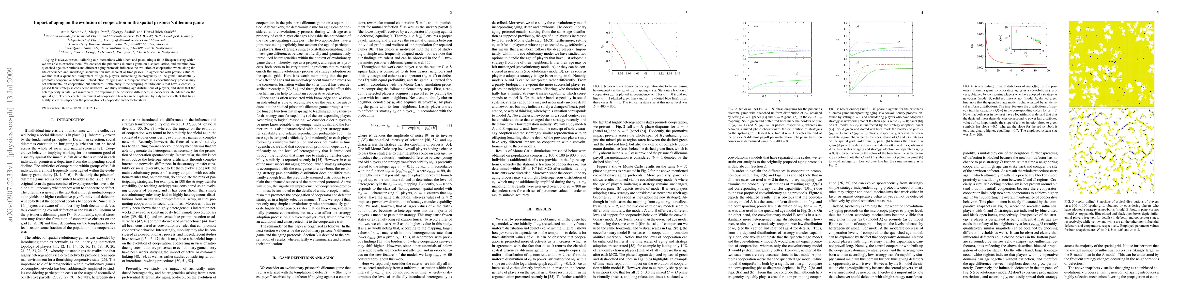 Aging in the prisoner's dilemma game promotes cooperation through heterogeneous age distributions and a coevolutionary process where death of older players influences younger ones. This leads to an unexpected increase in cooperation levels on a spatial grid.