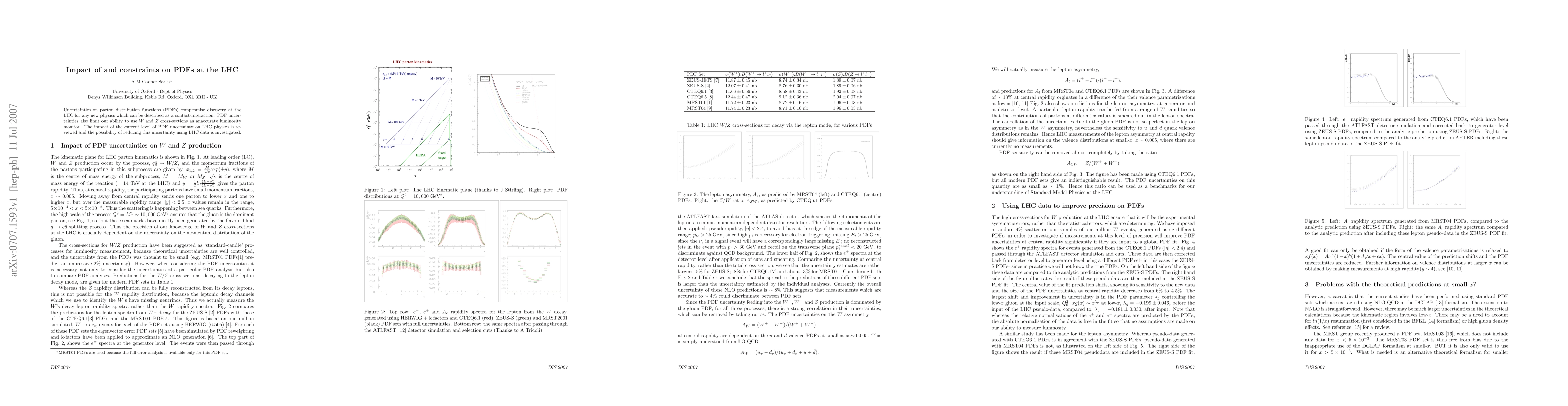 Uncertainties on parton distribution functions (PDFs) compromise discovery at the LHC for any new physics which can be described as a contact-interaction. PDF uncertainties also limit our ability to use W and Z cross-sections as an accurate luminosity monitor. The impact of the current level of PDF uncertainty on LHC physics is reviewed and the possibility of reducing this uncertainty using LHC data is investigated.