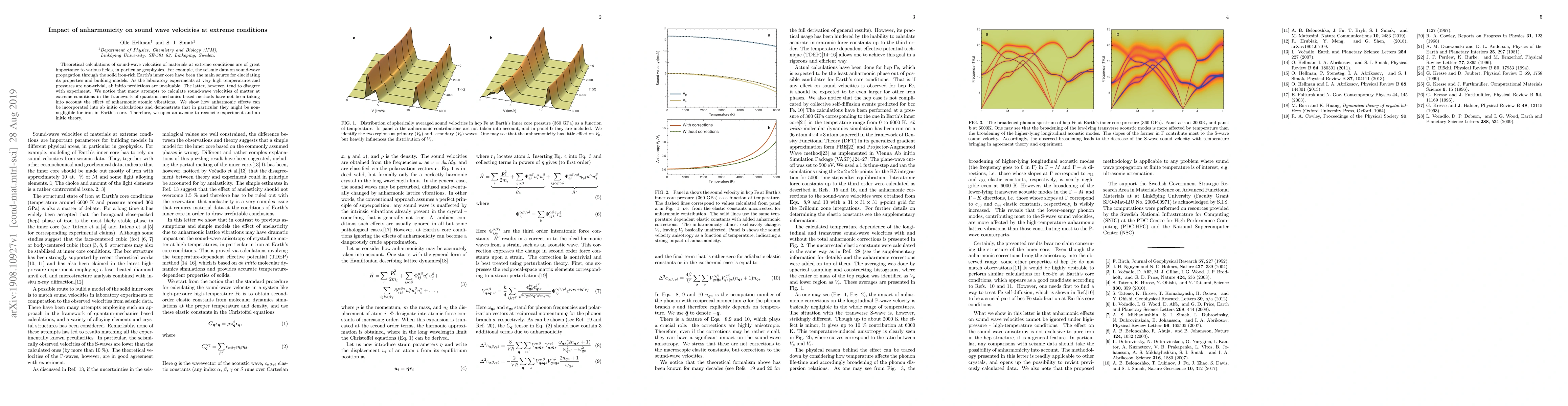 Theoretical calculations of sound-wave velocities of materials at extreme conditions are of great importance to various fields, in particular geophysics. For example, the seismic data on sound-wave propagation through the solid iron-rich Earth's inner core have been the main source for elucidating its properties and building models. As the laboratory experiments at very high temperatures and pressures are non-trivial, ab initio predictions are invaluable. The latter, however, tend to disagree with experiment. We notice that many attempts to calculate sound-wave velocities of matter at extreme conditions in the framework of quantum-mechanics based methods have not been taking into account the effect of anharmonic atomic vibrations. We show how anharmonic effects can be incorporated into ab initio calculations and demonstrate that in particular they might be non-negligible for iron in Earth's core. Therefore, we open an avenue to reconcile experiment and ab initio theory.