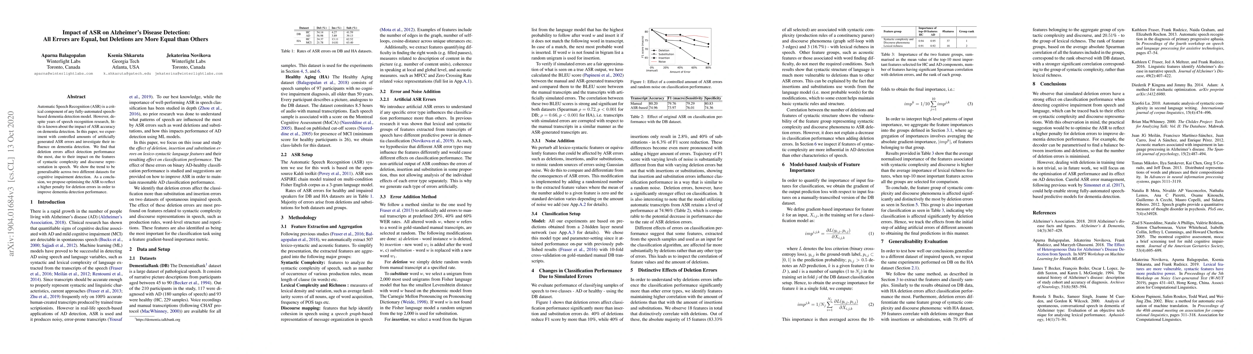 This paper investigates how different types of Automatic Speech Recognition (ASR) errors impact the detection of Alzheimer's disease. It finds that deletion errors, particularly, degrade detection performance by affecting syntactic complexity and discourse representation in speech, suggesting a need to optimize ASR systems to prioritize reducing these errors.