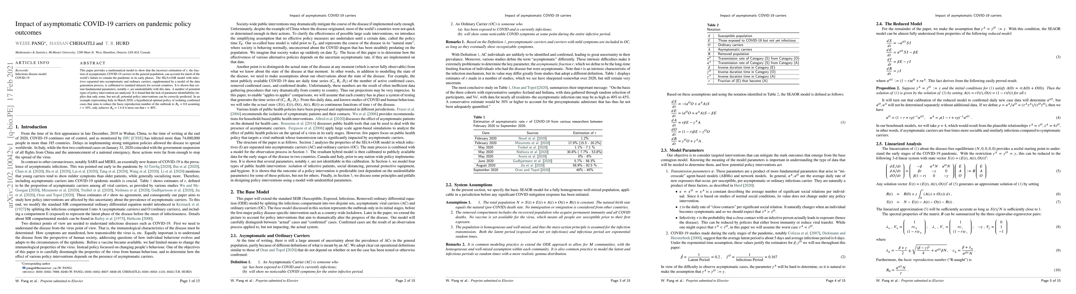 This paper provides a mathematical model to show that the incorrect estimation of r, the fraction of asymptomatic COVID-19 carriers in the general population, can account for much of the world's failure to contain the pandemic in its early phases. The SE(A+O)R model with infectives separated into asymptomatic and ordinary carriers, supplemented by a model of the data generation process, is calibrated to standard datasets for several countries. It is shown that certain fundamental parameters, notably r, are unidentifiable with this data. A number of potential types of policy intervention are analyzed. It is found that the lack of parameter identifiability implies that only some, but not all, potential policy interventions can be correctly predicted. In an example representing Italy in March 2020, a hypothetical optimal policy of isolating confirmed cases that aims to reduce the basic reproduction number of the outbreak to R0 = 0.8 assuming r = 10%, only achieves R0 = 1.4 if it turns out that r = 40%.