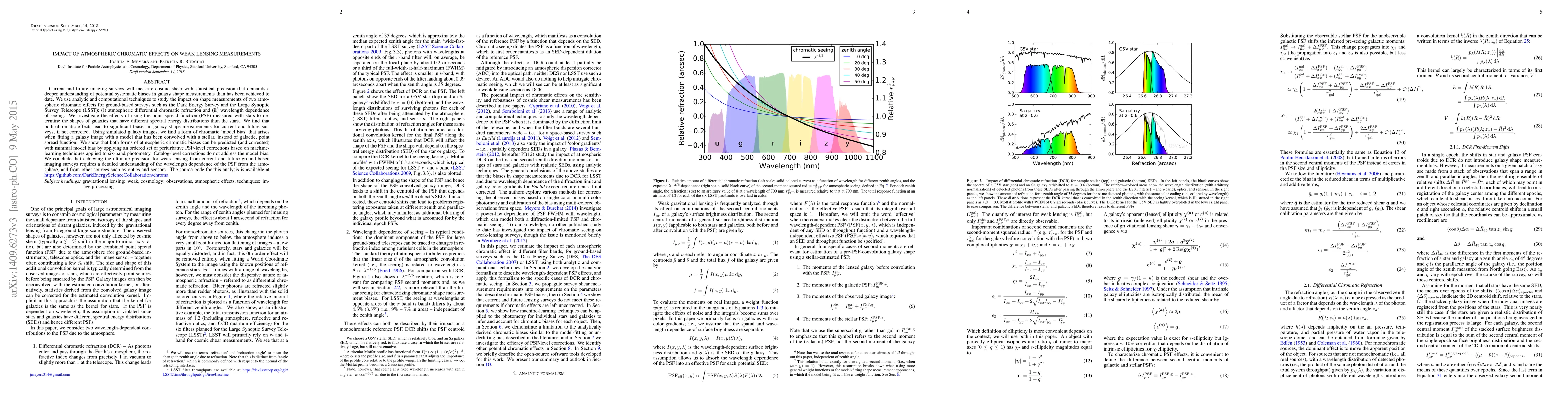 This paper investigates the impact of atmospheric chromatic effects on weak lensing measurements in ground-based surveys, finding significant biases due to differential chromatic refraction and wavelength dependence of seeing. It proposes a method using machine-learning techniques to correct these biases at the PSF level, emphasizing the need for detailed PSF understanding for precision weak lensing measurements.