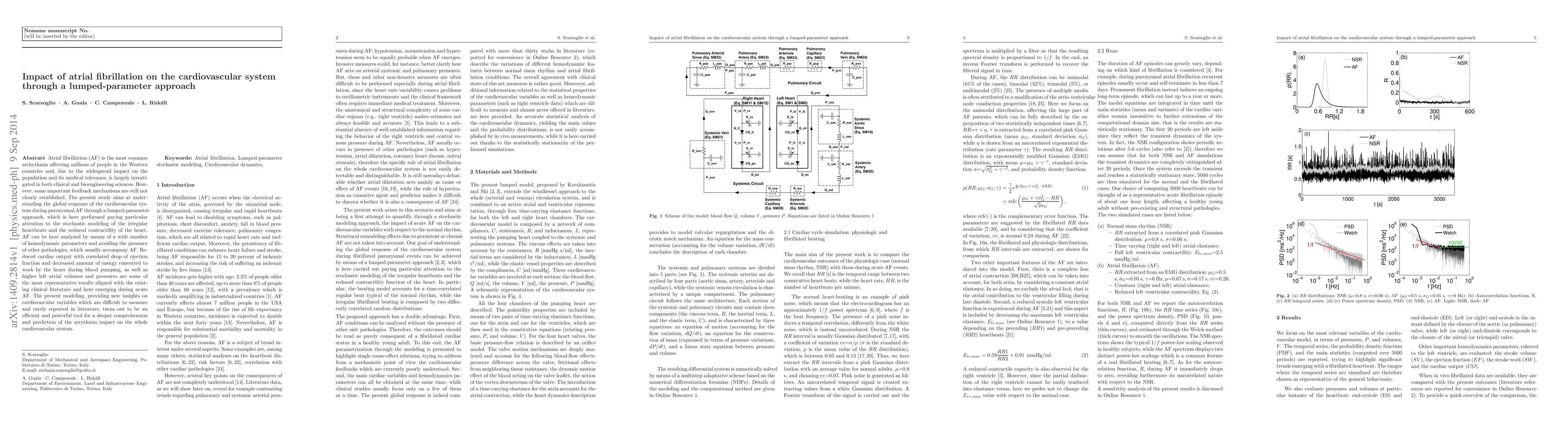 This study employs a lumped-parameter approach to model the cardiovascular system's response to paroxysmal atrial fibrillation (AF), focusing on the irregular heartbeats and reduced heart contractility. The findings reveal reduced cardiac output, decreased ejection fraction, and higher left atrial volumes and pressures, offering new insights into AF's impact on the cardiovascular system.