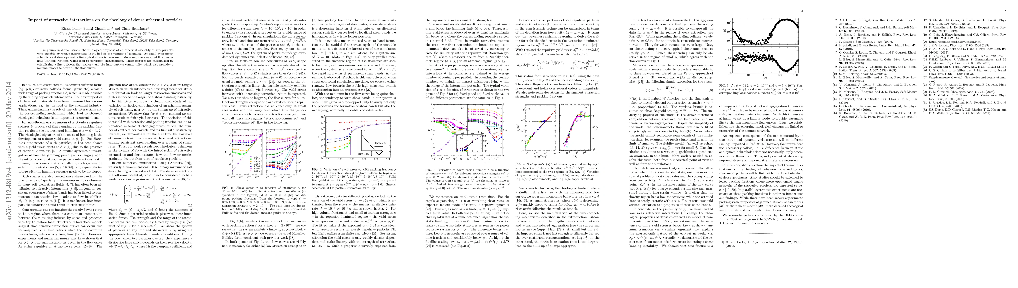 Using numerical simulations, the rheological response of an athermal assembly of soft particles with tunable attractive interactions is studied in the vicinity of jamming. At small attractions, a fragile solid develops and a finite yield stress is measured. Moreover, the measured flow curves have unstable regimes, which lead to persistent shearbanding. These features are rationalized by establishing a link between the rheology and the inter-particle connectivity, which also provides a minimal model to describe the flow curves.
