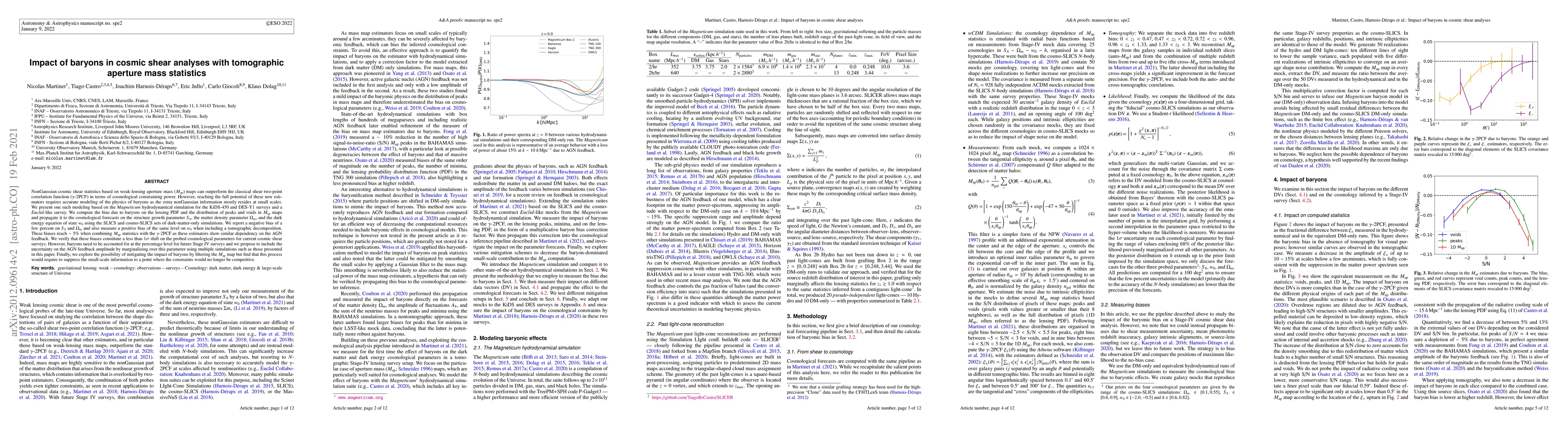 This paper investigates the impact of baryons on cosmic shear analyses using tomographic aperture mass statistics, finding a few percent negative bias on $S_8$ and $\Omega_{\rm m}$, and a positive bias on $w_0$. It concludes that while current surveys are not significantly affected, future surveys require accounting for baryons at the percent level, suggesting a need to marginalize over AGN feedback uncertainties.