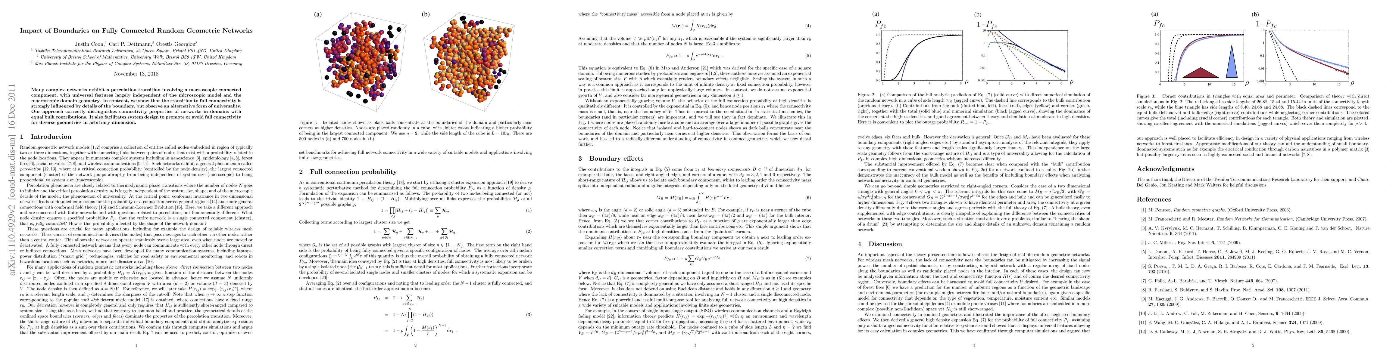 Many complex networks exhibit a percolation transition involving a macroscopic connected component, with universal features largely independent of the microscopic model and the macroscopic domain geometry. In contrast, we show that the transition to full connectivity is strongly influenced by details of the boundary, but observe an alternative form of universality. Our approach correctly distinguishes connectivity properties of networks in domains with equal bulk contributions. It also facilitates system design to promote or avoid full connectivity for diverse geometries in arbitrary dimension.