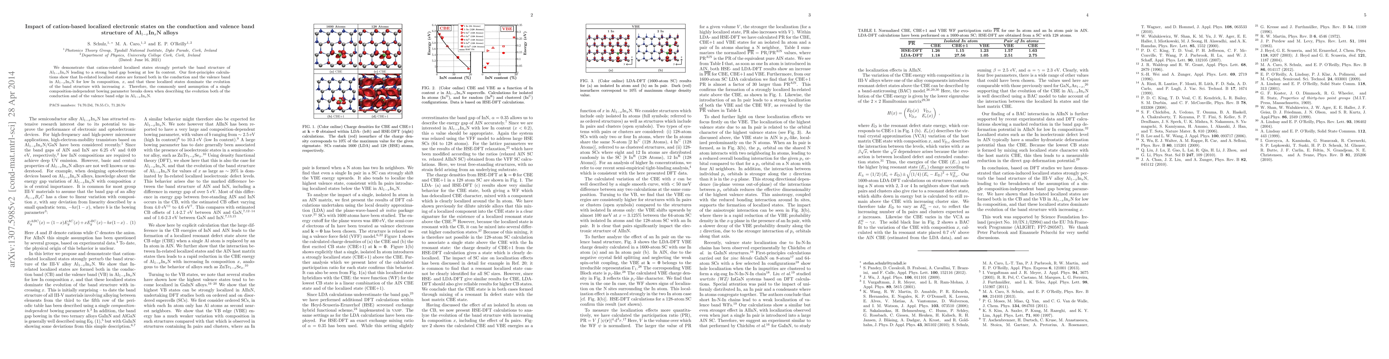 This study reveals that cation-related localized states in $\text{Al}_{1-x}\text{In}_x$N significantly alter the conduction and valence band structures, causing strong band gap bowing at low In content. First-principles calculations indicate that In-induced localized states dominate the band structure evolution, invalidating the assumption of a single, composition-independent bowing parameter.
