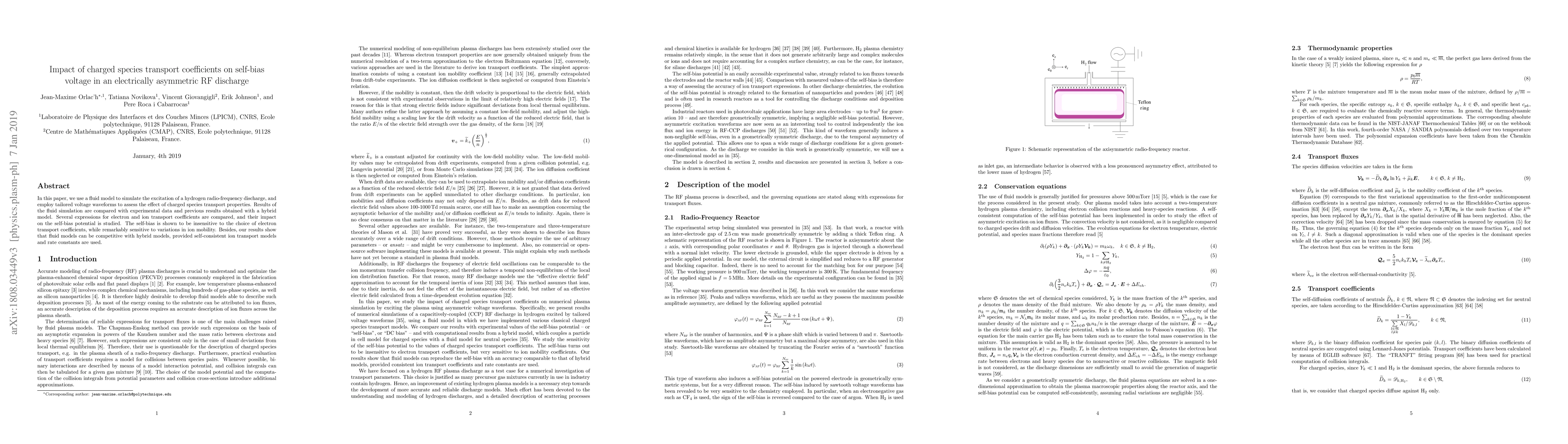 This paper uses a fluid model to simulate a hydrogen RF discharge, assessing how charged species transport properties affect the self-bias voltage. The self-bias is found to be insensitive to electron transport coefficients but highly sensitive to ion mobility, suggesting fluid models can match hybrid models when accurate ion transport models are applied.