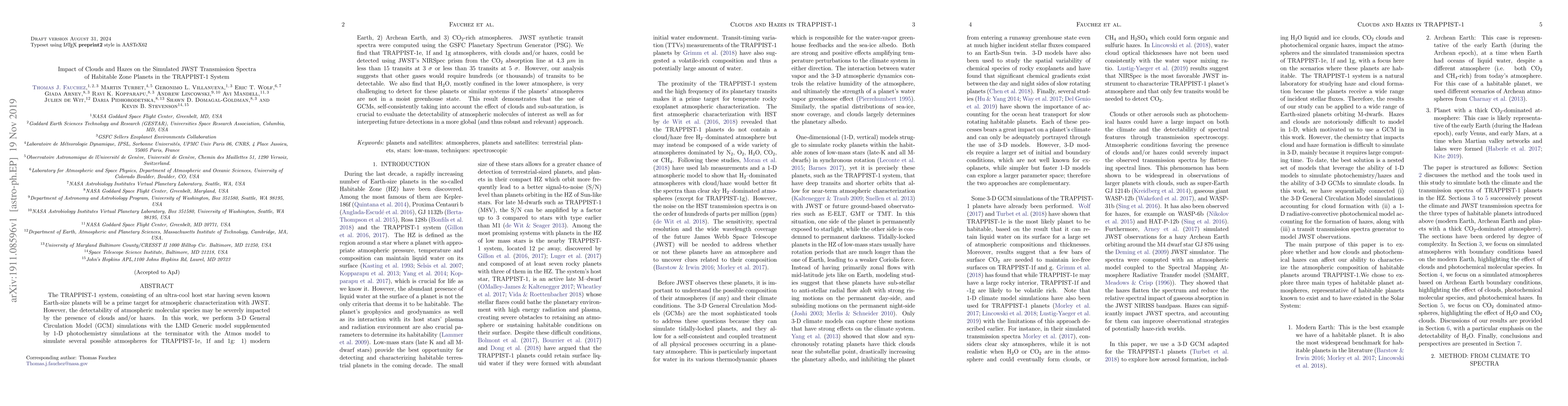This paper investigates the influence of clouds and hazes on the detectability of atmospheric molecules in the TRAPPIST-1 system using JWST simulations. It finds that while CO2 can be detected in less than 15 transits, other gases require hundreds or thousands of transits, emphasizing the importance of GCMs in atmospheric studies.